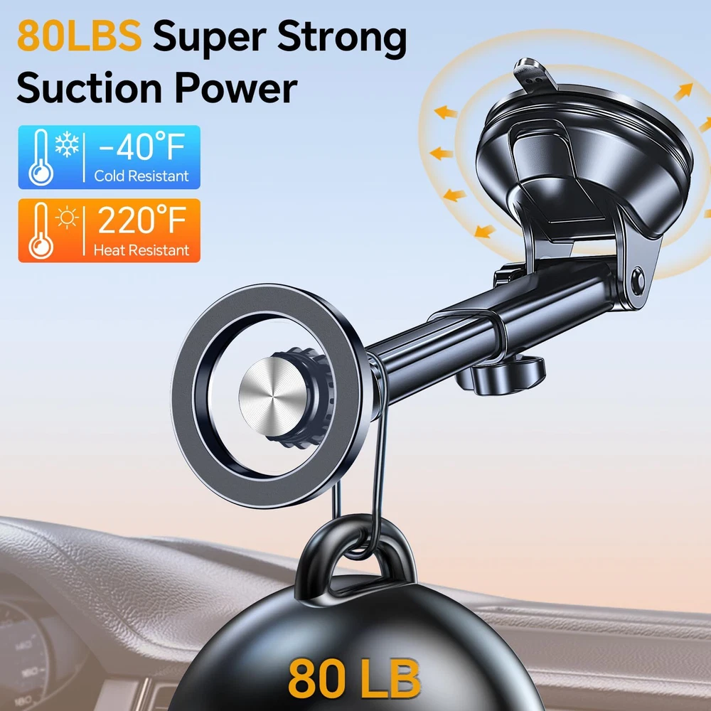 【2 in 1 fits Magsafe Magnetic Cell Phone Holder for Car】 - You are not sure which mounting method is more suitable for your car? No worries! 2 base suction cup/vent mount base magnetic car mount for flexible placement. Horizontal and vertical vents, dashboards and tables, all places work perfectly. In addition, you can choose to avoid problems caused by environmental influences due to low winter temperatures and hot summers. Suitable for all cars, pickups, suv's, cabs, etc 【STRONG MAGNETIC MagSafe Car Mount】 - This powerful magnetic phone holder can create a powerful attraction that firmly supports your device while allowing you to drive without distraction. it easily and securely holds your phone through bumps, sharp turns or even sudden stops, no worrying of dropping your phone. 【Adjust Car Holder Mount As You Wish】 - The ball joint and arm of this mobile phone car mount are 10 x sturdier than normal ones. Adjustable 270° Telescopic Arm/360° Rotation Ball Joint/Extendable Arm, allow you to rotate your phone to landscape or portrait and adjust your phone to a position angle that meets your need. During driving, you can adjust this car cell phone holder according to your front passenger seat to avoid obstructing the sight and ensure driving stability and safety. 【Secure Stable Install】 - The car cell phone mount features an extra strong suction cup . the reusable suction cup attaches firmly to the car windshield directly reusable suction cup combo provide a powerful hold and superior sticking strength on the dashboard. 【Complete Package Included, For Every Situation】: 1 * MagSafe Car Mount; 1 * Sticky Suction Cup Base; 1 * Sturdy Vent Clip; 1 * Thick metal ring; 1 * Considerate User Manual. We offer prompt efficient after sale service to ensure a happy purchasing. For any issue among the using of our product, you are warmly welcomed to contact us by e-mail. Our professional customer service is always there for your until you are satisfied with the solution.