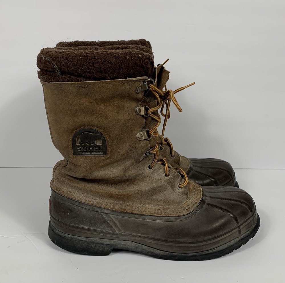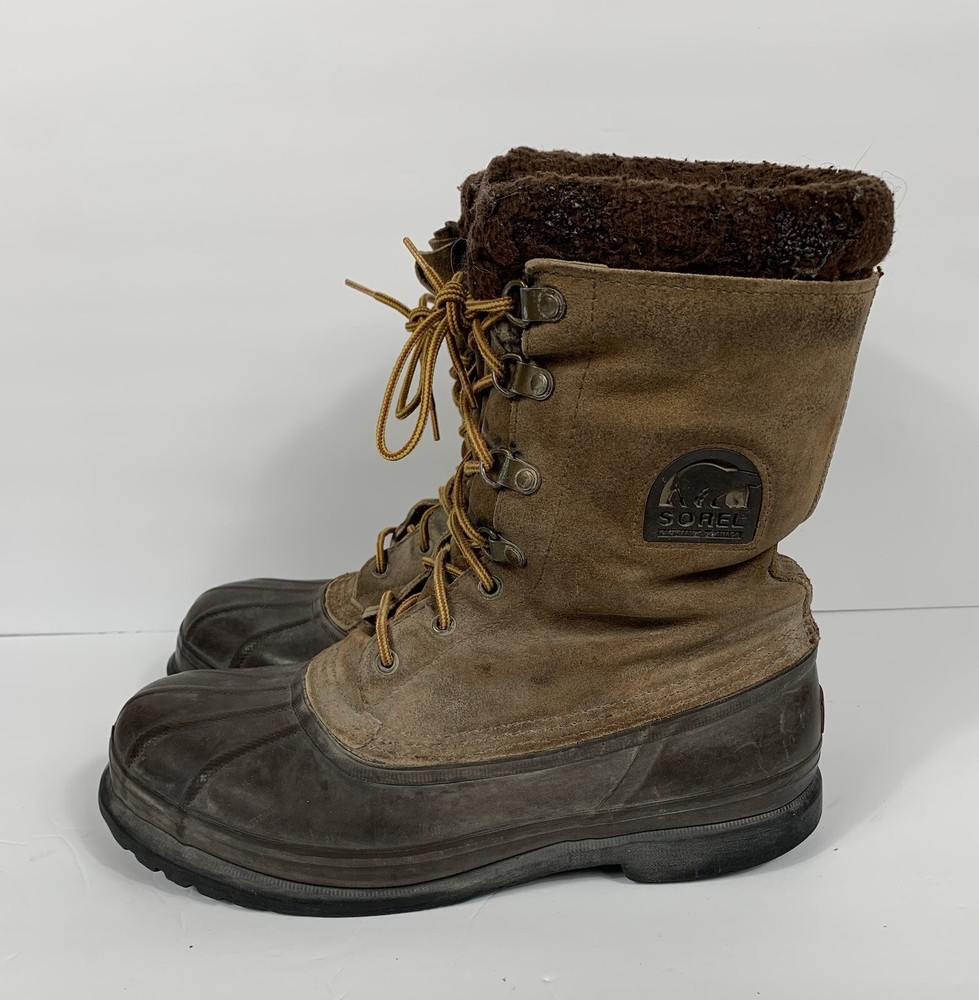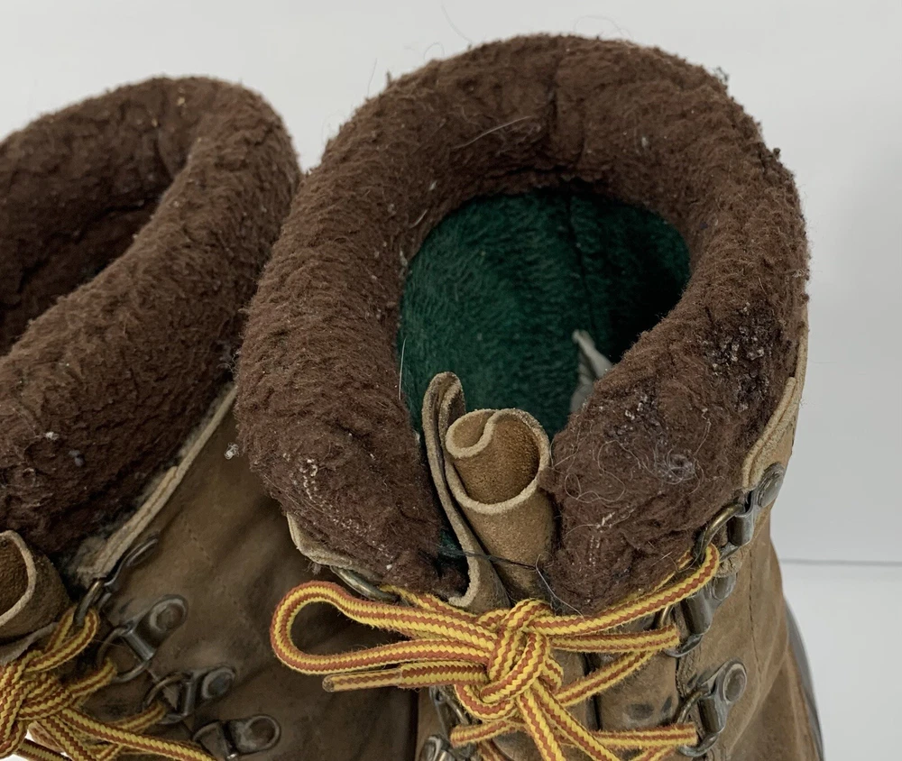 READ Wear throughout, scuffs, scratches, etc. Size tag is worn, cannot tell the actual size, seems like a men’s size 11 or 12? - please see pictures for details and measurements. Features/Style: hiking, Gorpcore, outdoor, hipster, modern, sports, camping, outerwear, sledding, snowmobiling, winter, hunting, workwear, rugged, classic, Inuit, Eskimo, Canadian, Canada, etc We Offer Super Fast Shipping: We Ship Out The Next Business Day!