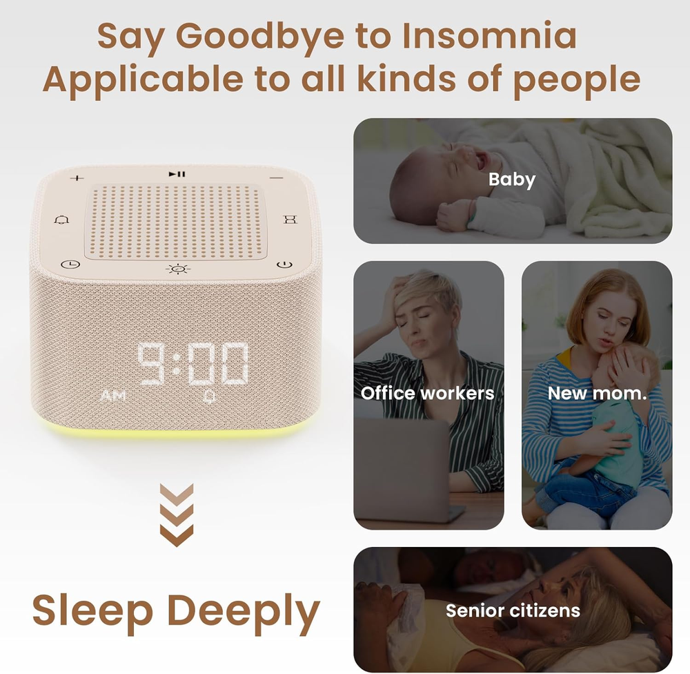 This sound machine is a game-changer for sleep! Love the 32 soothing sounds—especially rain and brown noise—and the app control makes it super convenient. The night light is soft and adjustable, perfect for kids or relaxing. Lightweight, easy to use, and the auto-off timer is a great feature. Highly recommend for better sleep!