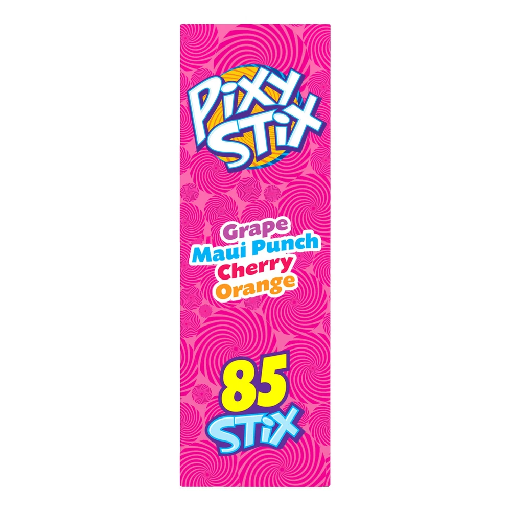 This pack is loaded with 85 straws. That's a lotta' tart, fruity punch! The handy packaging makes Pixy Stix the most convenient sweet treat. Down the delicious colorful candy in shot. Put it in a drink for a fruity twist. This convenient variety pack comes loaded with grape, Maui punch, cherry and orange-flavored candy straws. Toss 'em in your cart today and get the sweet and tart candy party started with the ideal treat: Pixy Stix. Discover the electrifying burst of flavor in Pixy Stix. With an array of tangy -filled straws in tantalizing flavors like grape and cherry, Pixy Stix promise a zesty adventure for your taste buds. Unleash the sweet sensation today! Look through a 's eyes – it's all about the , whimsical, and endless wonder. The Wonkaverse invites you to dive into a universe of magical and colorful candies. Give our Gobstopper sweet candy a try, or get the ultimate spicy candy experience with Atomic Fireball Jawbreakers. FRUITY GOODNESS: These Pixy Stix (85 ct) are packed with fruity flavors: grape, Maui punch, cherry, and orange. They’re a sweet tooth's dream that’ll make your taste buds do a happy dance TREAT ON THE GO: With their convenient, easy-to-use straw design, Pixy Stix are the perfect fruity candy in a fun, colorful straw for a treat while you're out and about BLAST FROM THE PAST: Hop in the nostalgia time machine with this classic Pixy Stix variety pack. They've been a cherished sweet & tart treat for decades and are still winning over taste buds today GIVE THE GIFT OF CANDY: Pixy Stix make a great gift for candy lovers of all ages. Put them in a party candy bag or take them to the office to bring the out in everyone A FLAIR FOR THE UNCONVENTIONAL: Pixy Stix are part of the family of candies: confectionery brilliance that knows no bounds. Try ’s other candies, like Atomic Fireballs or Gobstoppers WHERE LEGENDS MEET NOVELTY: Crafting candy is our passion, and it shows. From the timeless icons that have captured hearts to scrumptious new flavors that push boundaries, we celebrate candy