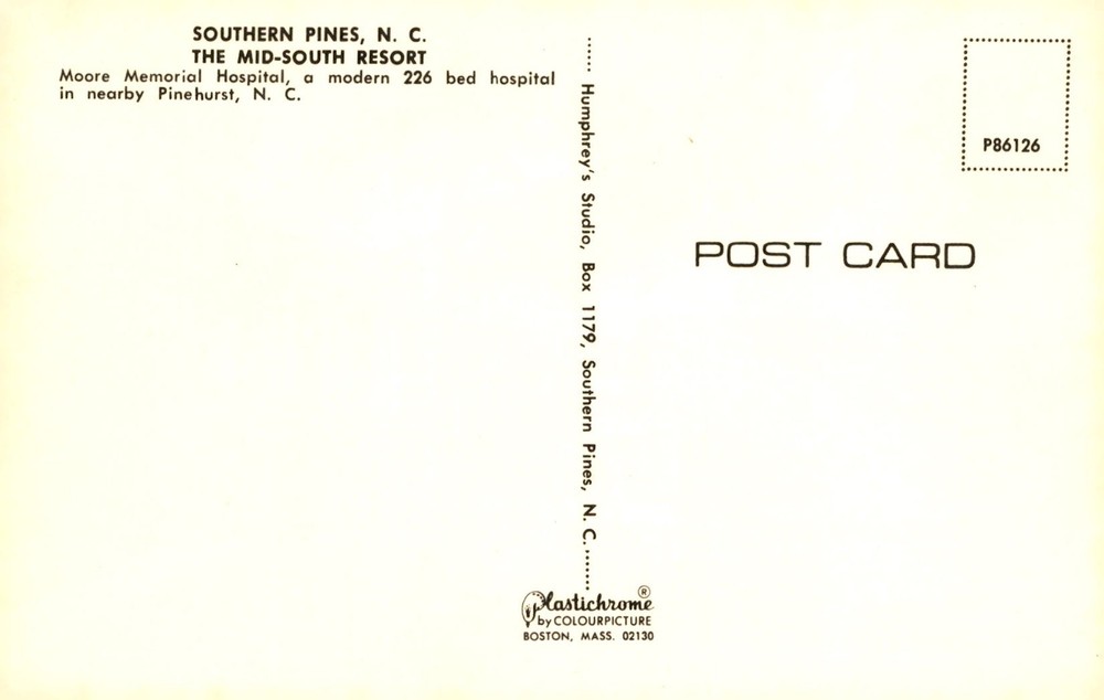 Explore the charm of Southern Pines, N.C., known for Moore Memorial Hospital in nearby Pinehurst. Visit Humphrey's Studio for picturesque memories.
