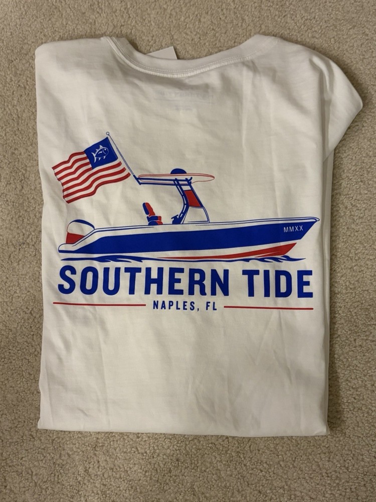 For sale is a Southern Tide Skipjack T-Shirt Large White Naples Florida Boat NWT. Item is brand new with tags. Please message with questions!