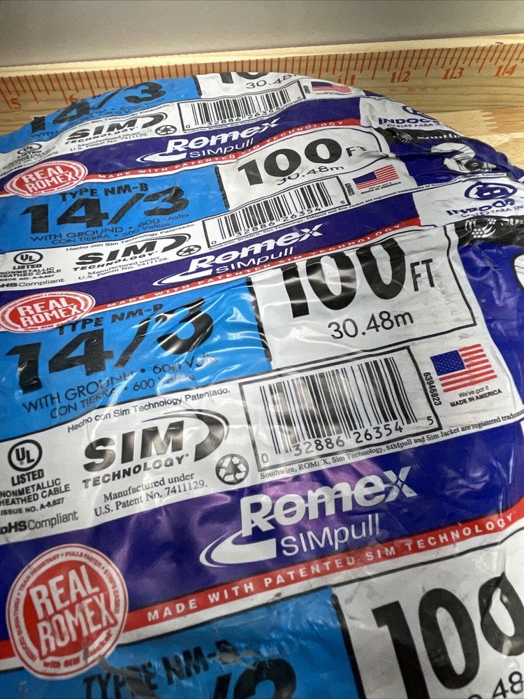 Southwire 100FT 14/3 Solid Romex SIMpull CU NM-B W/G Indoor Electrical Wire