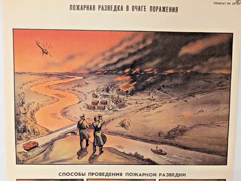 Soviet Radiation Propaganda Poster Poster Original The inscription on the poster: "extinguishing fires at the site of a nuclear explosion" Dimensions: Length: 25 inches OR 60 CENTIMETERS Height: 16 inches OR 43 CENTIMETERS Cosmetic condition: see photos Send the next day after payment. Send the track code. I combine items, so you can save on shipping by ordering two or more lots. Items are well packed. Payment via PayPal. I'm glad that you are interested in lots that I sell. Wish you a good shopping.