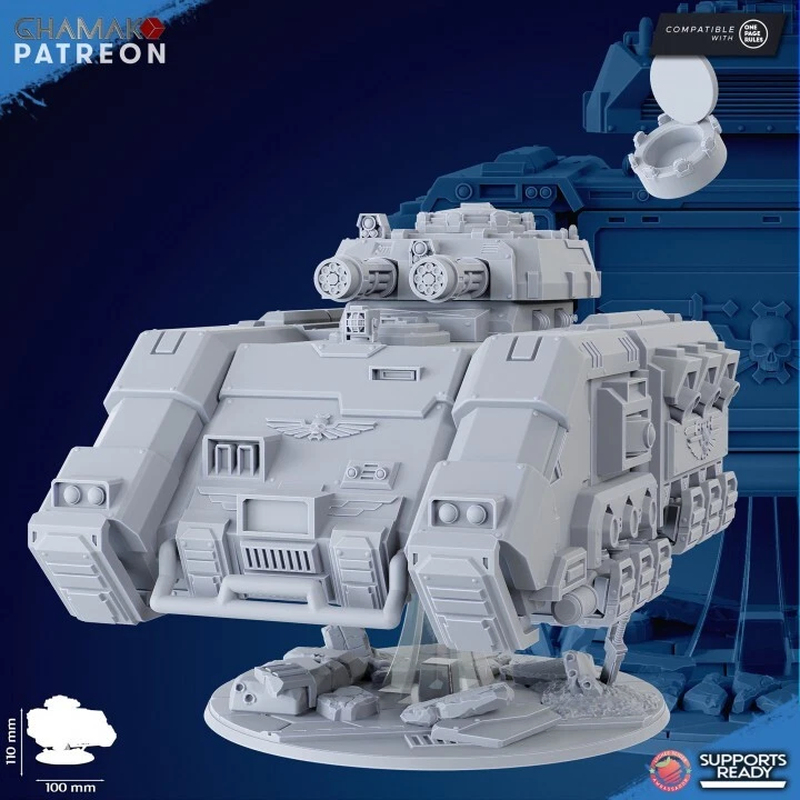 For sale is 1 vehicle printed to order high quality sculpts in HD grey resin. Floating support will be printed in GRAY resin. All items are printed on demand and sold under commercial license. Please allow 5 business days for printing and processing starting the day after your order is placed. Your order should be shipped no later than the business day AFTER the 5 th . Some orders will be much quicker, some will need the full 5 business days. We only go to the post office M-F unless we are out and about on Saturdays. This is a labor of love and we take the care to ensure complete printings without error. Sometimes things happen. Please just reach out to us and we will do what we can to make things right! All models are printed in a durable ABS-like resin. They undergo a thorough washing, cleaning, and curing process. While some small support marks/supports may remain, these can be easily removed with a quick snip or cut followed by filing or sanding. This hands-on approach is part of the hobbying experience. For extremely small parts, I may leave them attached to the supports for easier packaging and counting. I have access to the complete product lines of Station Forge Ghamak, Atlan Forge, DM Stash and YSEM. You can search for their creations on MyMiniFactory and request a quote for a bundle or singular item. Please note that only the unbuilt and unassembled models depicted in the product listings are available for purchase. I often print, clean, and assemble a model as a scale reference. I am happy to provide quotes for custom orders, including entire armies. If you have specific weapon or shoulder pad preferences for a squad or wish to create a bundle or custom unit, please don't hesitate to contact me. Remember, the most important thing is to roll the dice and have fun!