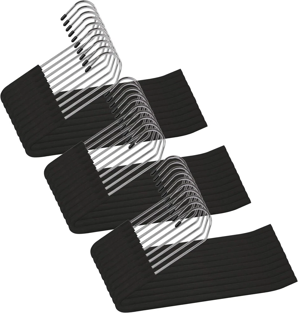 Material Metal Product Dimensions 13.2"W x 7.5"H Special Feature Space Saving, Anti Slip, Padded About this item 【Non-slip & Wrinkle-free】Coated with non-slip, eco-friendly, smooth sponge, keeps clothes in place and helps prevent wrinkles and creases. ►【Space Saving】Fitting standard closet rails, maximizes your storage room in your closet, keep your pants organized in a neat and tidy way. ►【Easy to Use】The open-ended design allows you to use the hanger without having to remove it from the rack. ►【Extremely Protective】Made of chrome-plated lightweight metal, with no sharp edges, fully protecting your clothes and hands. ►【Heavy Duty】Built to last with strength to support more than one item and still maintain its shape integrity without deformation. Material Metal Product Dimensions 13.2"W x 7.5"H Special Feature Space Saving, Anti Slip, Padded Recommended Uses For Product Trouser Number of Pieces 30 Number of Items 30 Shape Rectangular Finish Type Metallic Size 30 Pack Maximum Weight Recommendation 10 Pounds Manufacturer Spring Fever Item Weight 6.49 pounds