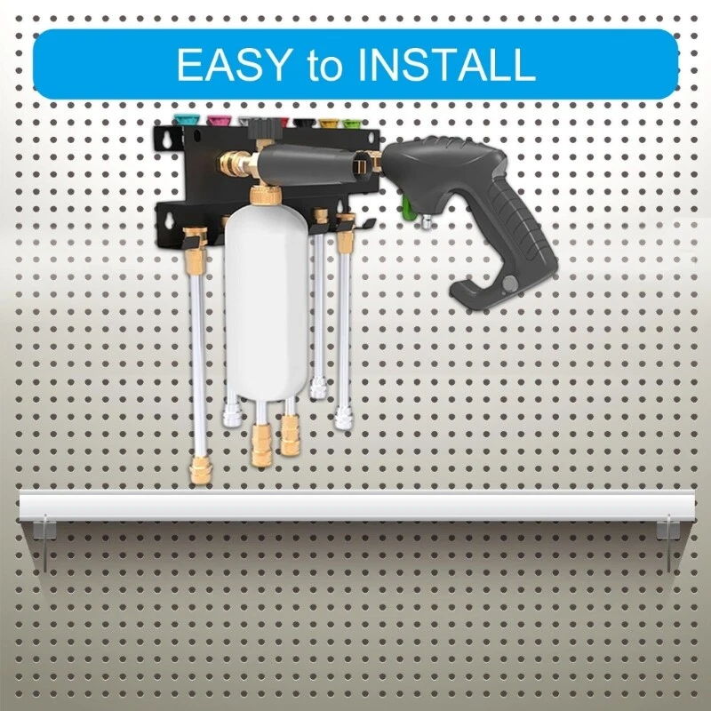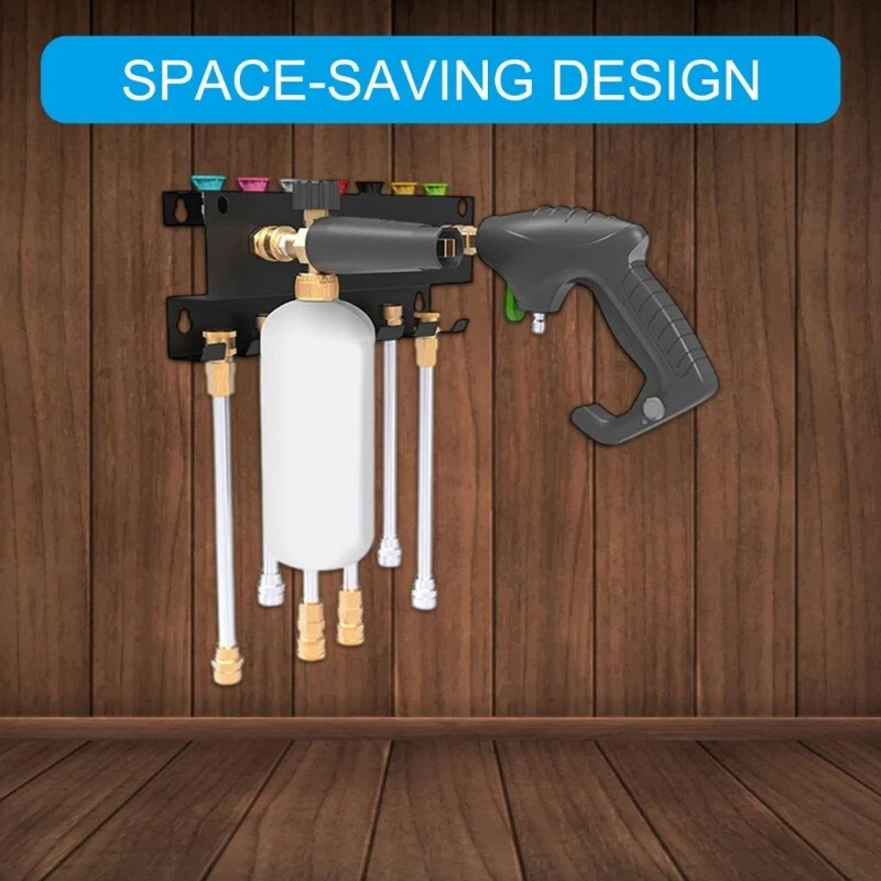 Space Saving Pressure Washer and Nozzle Wall Organizers for Workshop Clutter Features: Improve your efficiency with our Wall Mount Washer Holder for organizing pressure washer and accessories. Crafted from durability metal, this tool rack resists wear and tear, ensuring long lasting organization for your car wash essential. Suitable for both professional and enthusiasts, this holder provide a convenient storage solution that caters to anyone passionate about maintaining for home garages, commercial stations, or auto detailing shops, it keep your pressure washer wand and nozzle tips within easily reach. Streamlines your workspaces and enhances productivity with this robusts organizers, designed to hold up against the rigors of frequent use in any washing environment. Specifications: Component:Metal Size:Approx.28.5x11.95cm/11.22x4.72inch Package Includes: 1pc Pressure Washer Holder(with 1/4inch quick Qonnectors) 4pcs Screw note: Please allow 1mm errors due to manual measurement. Due to the differences between different monitors, the picture may not reflect the actual item color.
