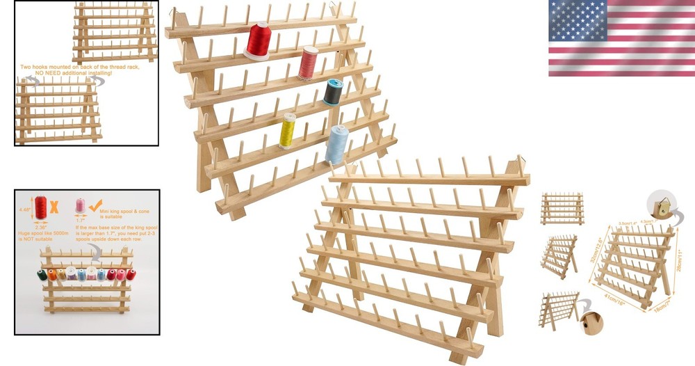 Space-Saving 2X60 Spools Wooden Thread Holder - Ideal for Sewing & Embroidery ‹ › ‹ › ‹ › ‹ › ‹ › ‹ › ‹ › ‹ › ‹ › Space-Saving 2X60 Spools Wooden Thread Holder Ideal for Sewing & Embroidery Why You'll Love It: Includes two sets of 60 spools thread racks , offering a total of 120 spools for optimal organization. Each spindle is designed with a center distance of 1.7 inches and a height of 1.4 inches , perfect for holding 60 mini king spools and cones (not suitable for large spools). Transform your sewing room into a realm of elegance and order, easily displaying all your colorful threads for quick access during embroidery and quilting projects. Innovatively designed to be free-standing or wall-mounted , ensuring you can customize your space however you desire. Constructed from natural beech wood with a smooth finish, allowing for personalization with DIY painting or staining to complement your space. Features: Easy setup: Pull out the legs for free-standing use or fold them for compact storage. Two hooks on the back allow for effortless wall-mounting (nails and tools not included). Compatible with all ’s 500m and 1000m spool threads, provided the maximum base size is greater than 1.70 inches . Organize your spools neatly to make every sewing or embroidery project straightforward and enjoyable. Assured quality and a design tailored for sewing enthusiasts – because we understand your passion. Create Your Ideal Workspace: Take control of clutter in your sewing sanctuary with our Space-Saving 2X60 Spools Wooden Thread Holder. Whether displayed prominently on your desk or beautifully mounted on your wall, this exquisite rack elevates the aesthetic of your workspace and showcases your vibrant thread collection. Don’t just store your spools; display them with sophistication while enhancing efficiency in your projects. Elevate your sewing experience today with our thread holder! Shipping Free & Fast Shipping - We offer free shipping to most of the USA with a normal delivery time of 3-7 days. However, due to the current situation, additional delivery time (up to 3 weeks) may be required for some items. Alternative Carriers - We may use alternative carriers (e.g. USPS, FedEx, UPS, etc.) to ensure your package arrives safely and on time. Due to the use of multiple carriers, we are unable to provide a tracking number automatically. Handling Time - Orders are processed and shipped within 1-2 business days of receiving cleared payment. Shipping Restrictions - Shipping to Alaska, Hawaii, Puerto Rico, Guam, and other US territories may incur shipping charges or delivery restrictions. Please contact us before ordering, or your order can be refunded/cancelled. State Restrictions - There may be restrictions based on your state of purchase. For example, certain items may not be shipped to California due to state regulations. Contact for Tracking Updates - If you require tracking updates or have any concerns about the delivery of your order, please feel free to contact us, and we will be happy to assist you. Return 30-Day Hassle-Free Returns - We want you to be completely satisfied with your purchase. If you are not, you can return the item within 30 days of receiving it for a full refund or exchange. Easy Return Process - To start a return, simply contact us and we will provide you with a prepaid return shipping label and detailed instructions. Restocking Fee - There are no restocking fees for returns. However, the buyer is responsible for return shipping costs if the return is not due to a seller's error. Refund Processing Time - Refunds will be processed within 5 business days of receiving the returned item in its condition. Payment We accept all major credit cards, PayPal, and Apple Pay for your convenience. Your payment information is secure and encrypted to ensure a safe and seamless transaction. Please complete your payment within 3 days of purchase to avoid any delays in shipping. Feedback Your feedback is extremely important to us. We strive to provide the best products and customer service possible. If you are satisfied with your purchase, please take a moment to leave us a positive review. If you have any concerns or issues with your order, please contact us before leaving negative feedback. We are committed to resolving any problems and ensuring your satisfaction. Contact Us If you have any questions or concerns, please feel free to out to our customer support team. You can contact us through the eBay messaging system. We are available Monday to Friday, 9:00 am to 5:00 pm EST, and we will do our best to respond to your inquiry within 24 hours. Buy it now and enjoy a pleasant shopping experience! Unit Quantity: 120 Type: Spool Rack Material: Beech Color: Natural Wood