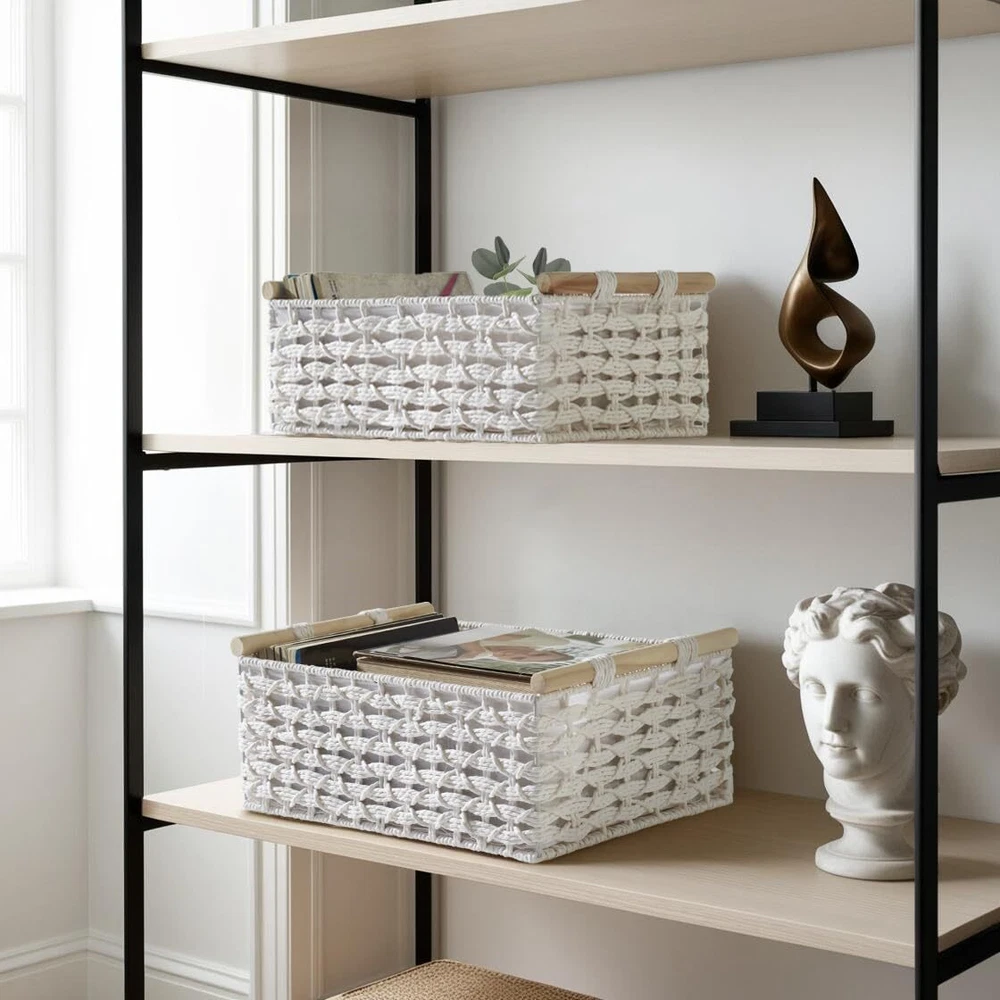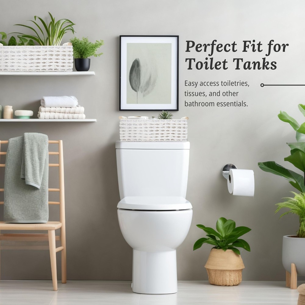 DECOMOMO Bathroom Basket White Wicker Baskets for Back of Toilet, Countertop, Pantry, Home Decor (White – 2 Pack) Durable & Handmade: Attractive hand-woven paper rope white baskets for storage, designed with a sturdy wire frame. Featuring wooden handles and a linen lining, these decorative baskets for home decor protect items while adding charm to your space. Perfect as organization baskets or shelf baskets. Bathroom & Toilet Tank Basket: This bathroom basket organizer is both stylish and functional, perfect as a back of toilet basket for toilet paper, face and hand towels, hairbrushes, body care products, and perfumes. The medium size fits perfectly as a toilet basket tank topper, while both sizes work well on vanities and shelves. Extra Spacious & Easy Care: Set of 2 white baskets. Large: 14.6" L x 9.8" W x 5.5" H & Medium: 13.8" L x 9" W x 4.7" H—crafted for ample storage of essentials. These white wicker storage baskets are easy to maintain; simply wipe the linen lining and woven exterior. Creative Gifts: These decorative storage baskets make a unique gift idea! Use the basket white as a makeup basket or fill with candles, wine, and treats for housewarming, birthdays, or baby showers. Multi-Purpose: Our small white baskets are versatile for the living room, bathroom, shelves, or as toilet baskets. These white wicker storage solutions add a stylish touch to any room, and are also perfect for a coffee table, pantry, or bedroom. Trusted Brand: Since 2017, DECOMOMO has been dedicated to superior storage solutions. We prioritize 100% customer satisfaction, backed by a money-back guarantee. Need assistance? Contact us on Amazon for a response within 24 hours. SHIPPING Domestic Buyers - We have confidence in our products, but if you are not fully satisfied please contact us within 30 days of purchase and you will get full refund. - We ship within 3 business days of payment, usually sooner - We offer FREE shipping on all orders! - We only ship to the lower 48 states, no APO/FPO addresses or PO Boxes allowed International buyers – please note: Import duties, taxes, and charges aren't included in the item price or postage cost. These charges are the buyer's responsibility. - Please check with your country's customs office to determine what these additional costs will be prior to bidding or buying. * Order Cancellation Policy ** You can return a product for up to 30 days from the date you purchased it. 1. The seller reserves the right to cancel the special case only due to eBay cancellation fee. 2. The decision of seller is the final. 3. The seller will respond to the cancellation request within 2 business days. Please wait for the result of cancellation. 4. In case the cancellation is not completed by some reasons, the buyer can follow the options below to get the refund. 4.1 The buyer can reject the item when it arrives. 4.2 The buyer can send the item back to the seller within 30 days If the buyer receives item (USA Shipment ONLY). The seller will provide the FREE return label to the buyer when the buyer opens " Return Item" case on eBay by using the reason as "Change my mind" ONLY. 5. When buyer has placed the order. The order will be processed and completed by automatic warehouse system within 5 minutes. In case that buyer sends the cancellation request after 5 minutes of placing the order, the request will be rejected. **Sending direct message to cancel the order is not allowed for every case.* Return Policy For the return case - If buyer would like to return the items for refund or replacement, please CONTACT SELLER to receive the free return label from seller. The refund or replacement will be processed with the tracking number of return label which is provided by seller only. The other ways of return which are not approved by seller will not be processed for the refund or replacement.