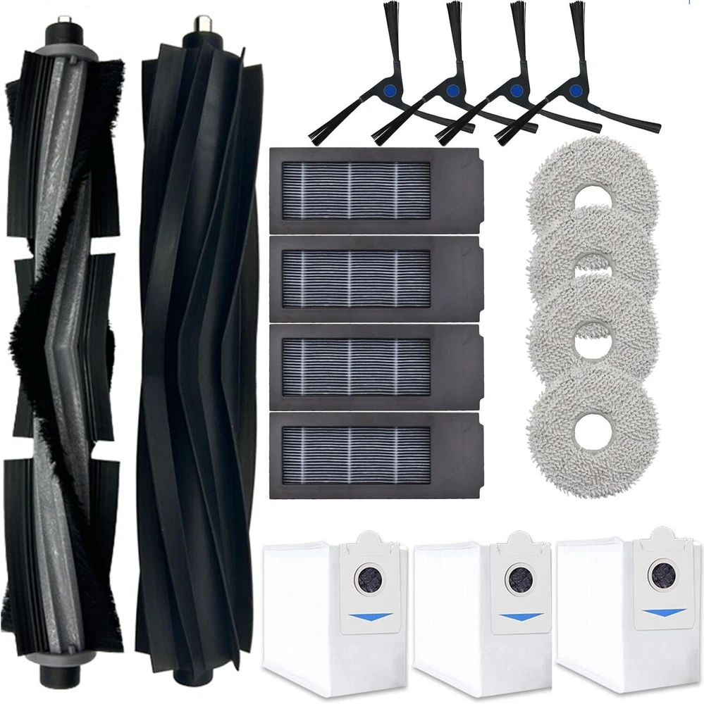Spare Parts Accessories Kit Compatible With ECOVACS DEEBOT Omni Vacuum Main Rubber Brush,1 Normal Main Brush,4 Side Brush,4 Hepa Filters,4 Mop Pads,3 Dust Bags 17 Pack-Black Spare parts only apply for ECOVACS DEEBOT Omni Vacuum Cleaner, please kindly check your machine type before ordering. All parts kit are not original, but our supplies are from the same OEM factory and use the same materials, process and present same performance. The main brush is made of high-quality ABS rubber, snaps quickly, and can be easily replaced without any tool. Soft silicon side brush reaches deep into corners and edges to remove more dirt, dust, and debris. To help your vacuum run smoothly and not just sell parts, we specially offer you 1 Main Rubber Brush,1 Normal Main Brush,4 Side Brush,4 Hepa Filters,4 Mop Pads,3 Dust Bags Free your hands from the complicated installed steps. Our accessory kit can fit your vacuum you can easily install them, and no extra tools are needed. Just say goodbye to other poor and unfit parts, you deserve better. Spare Parts Accessories Kit Compatible With ECOVACS DEEBOT Omni Vacuum Main Rubber Brush,1 Normal Main Brush,4 Side Brush,4 Hepa Filters,4 Mop Pads,3 Dust Bags