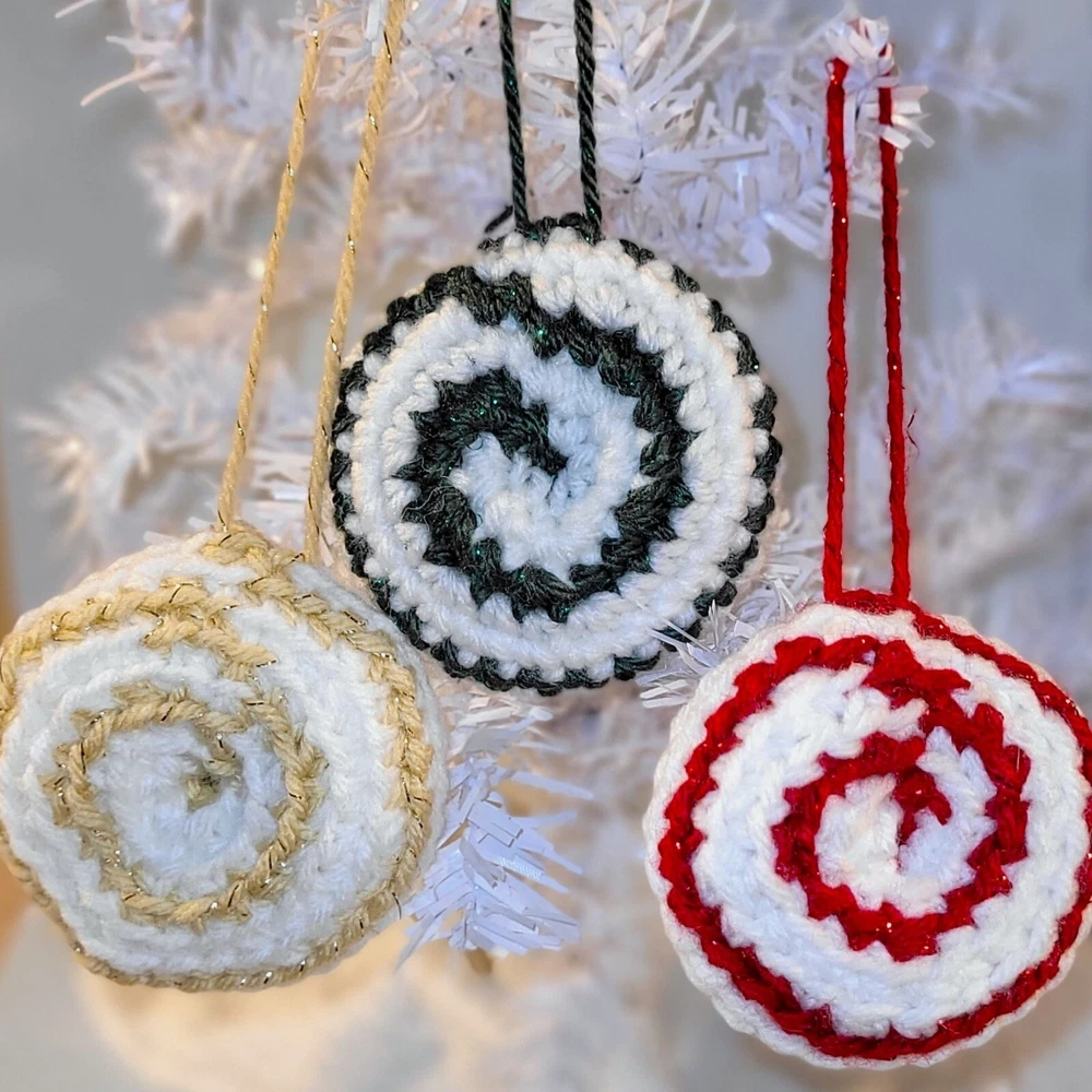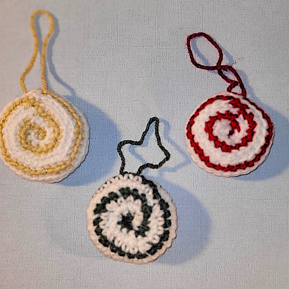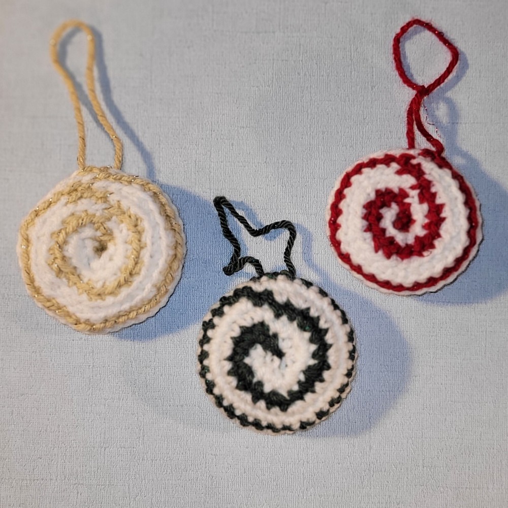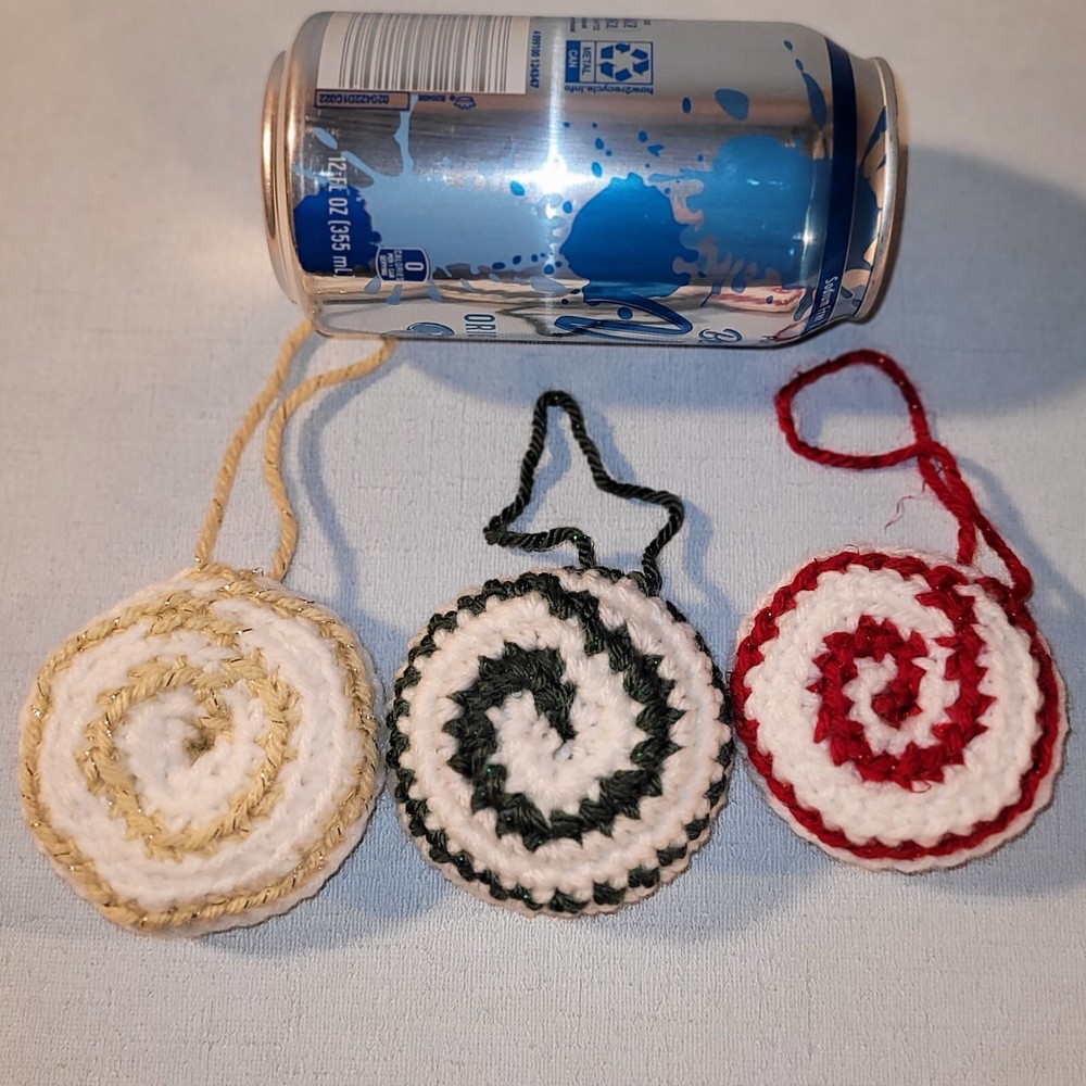 These "Candy Drop" Christmas Ornaments are a super-sweet addition to your Holiday decorations! Handmade crochet from acrylic yarn with metallic fibers, each ornament is about 3 inches across, 9.5 inches around, and has a 3.5 inch hanging loop. They are the perfect size for office decorations, attach to a package as an "extra" gift, or divide up for teachers' or colleagues' gifts. Ready-to-Ship, USPS Ground Advantage. International Shipping as well as expedited shipping are available; please contact me PRIOR to making your purchase (buyer pays in full). Please note-due to the handcrafted, 1-of-a-kind, “imperfectly unique” nature of this item, all sales are final & returns are not accepted. Confirm sizes & color; contact me if you have questions! 15% Bundle Discount when you spend $15 -just add to your cart! Thanks for looking! (Props not included with purchase.)