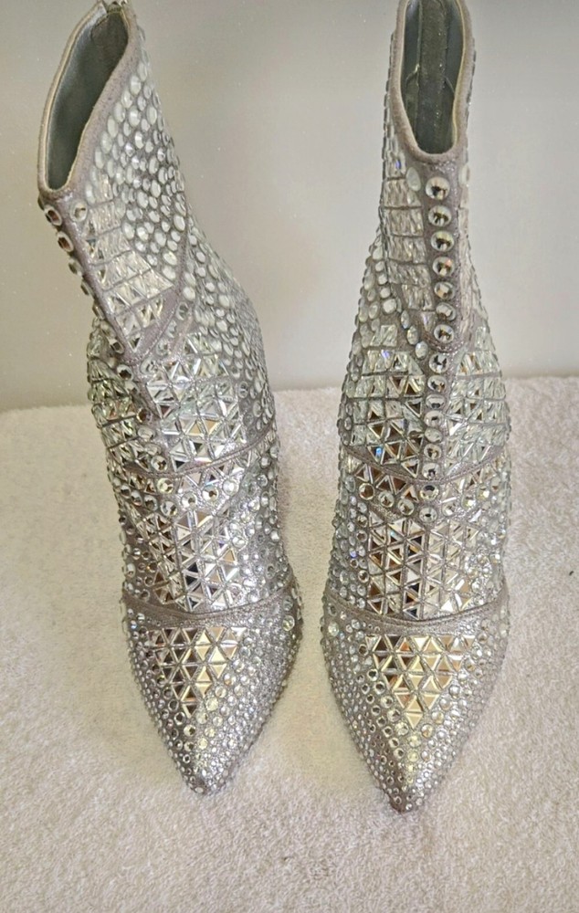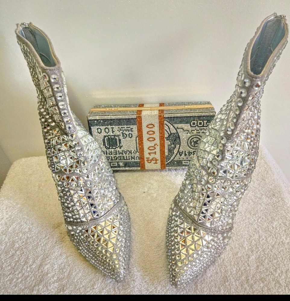 Boss-Up your shoe game with these Steve Madden Rhinestone Booties, a chic addition to any wardrobe. These mid-calf booties feature a striking silver leather upper, complemented by eye-catching rhinestone accents that are sure to add a touch of glamour to any outfit.Crafted for comfort and style, these booties come in a US size 10 and boast a supple leather lining, ensuring a luxurious fit. Whether you're dressing up for a night out or adding a sophisticated flair to your day wear, these Steve Madden booties are a versatile choice that doesn't compromise on elegance.