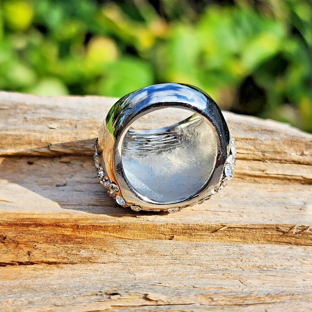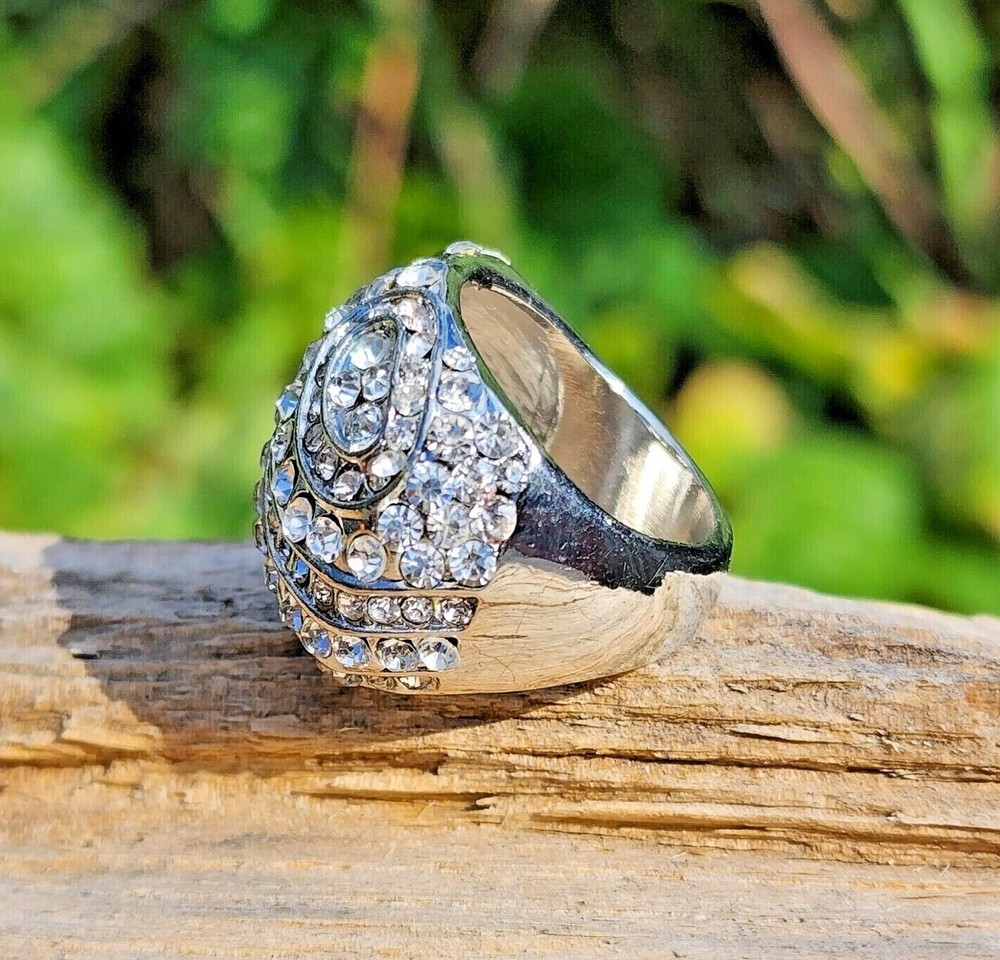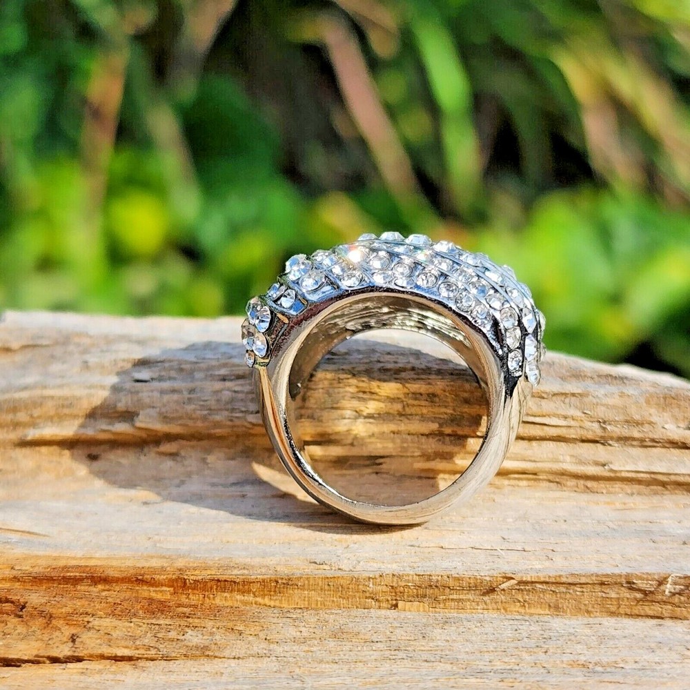 Abstract White Crystal Rhinestone Studded Large Steel Alloy Ring Size: 7.5 Color: Silver Gemstone: Crystal Rhinestones Material: Steel Alloy Ring Weight: 0.4 oz MSRP: $20