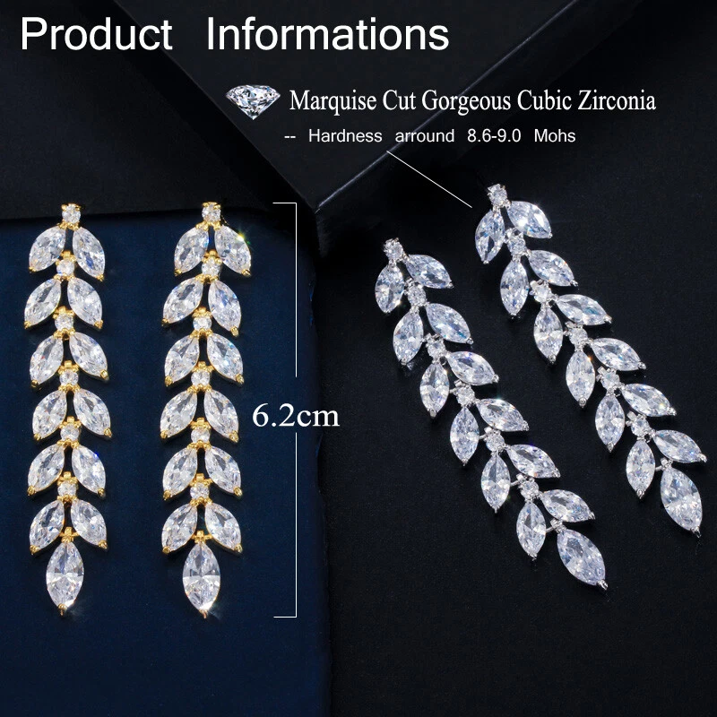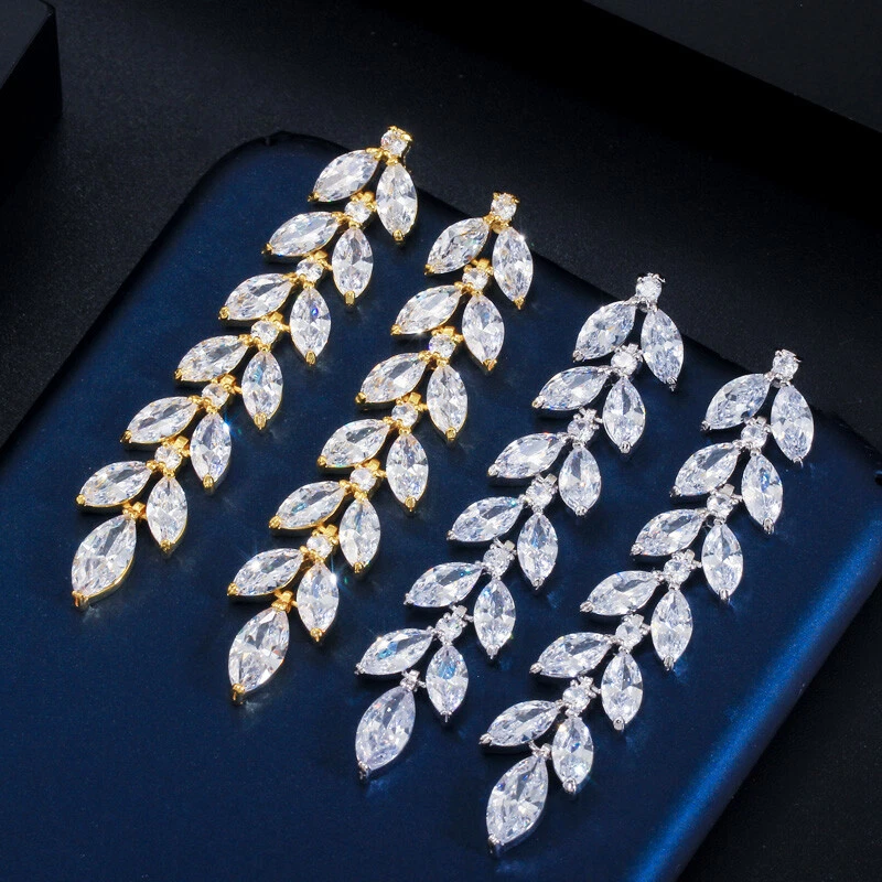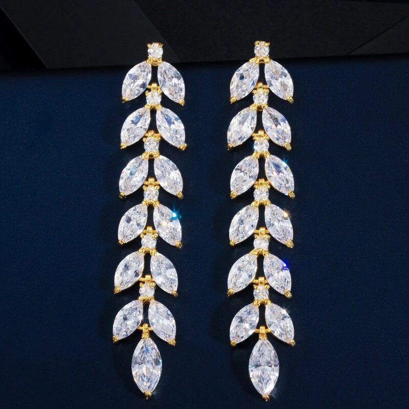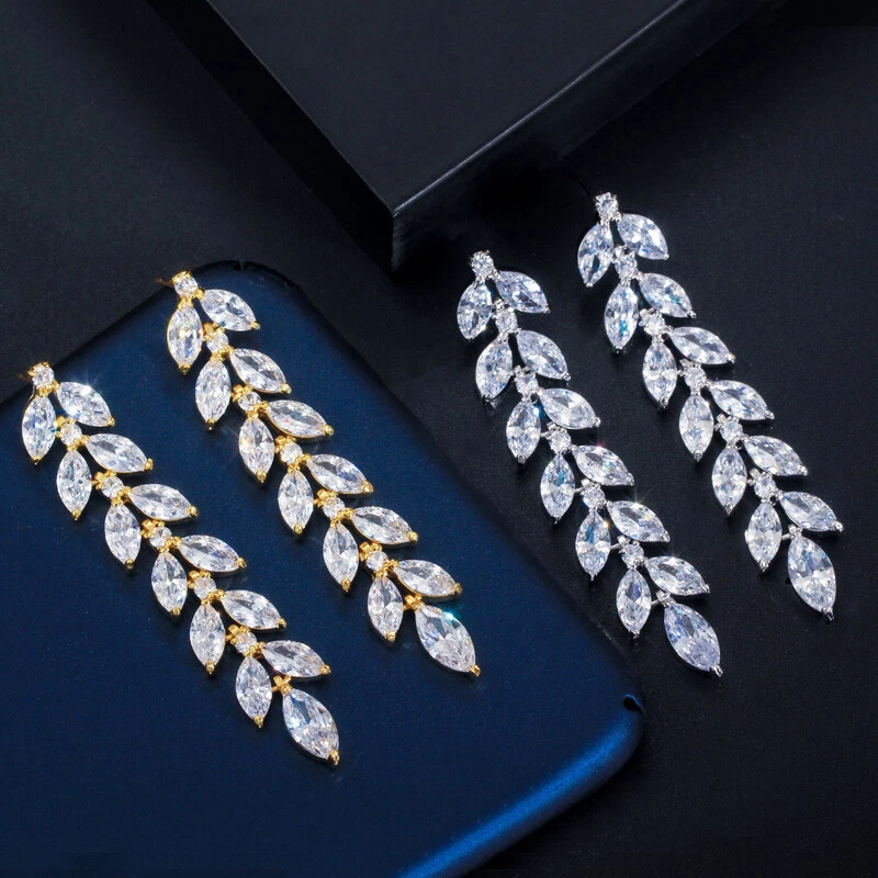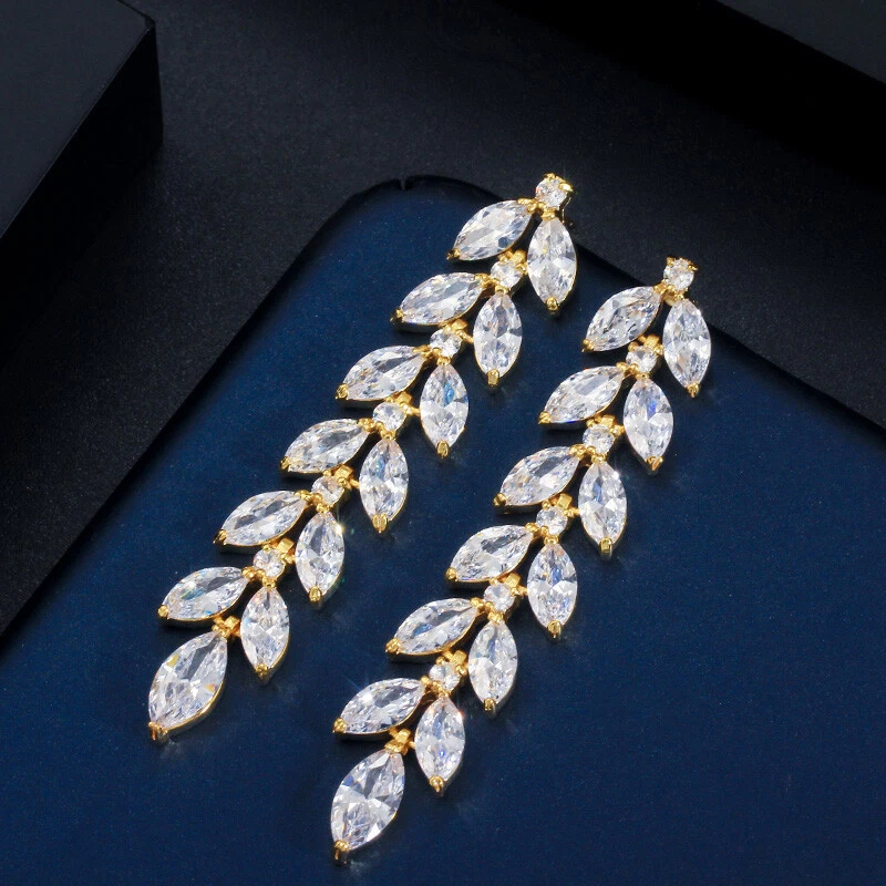 Sparkling Yellow Gold Plated Zircon Crystal Leaf Long Dangling Wedding Earrings There’s an old saying that: Jewelry is woman’s best friend. And one appropriate luxury jewelry helps to spice up your charm and beauty. And here’s the reason why you choose us: ★ We adopts high-grade Cubic Zirconia, which displays pure and fascinating color; ★ All our items are Elaborate, Gold Plated (white gold plated/yellow gold plated/black gold plated), by which the texture is smooth and with fancy look, and will be appropriate for so many occasions; ★ Our items are with Exquisite Design, which shows your excellent taste, and could catch people’s attention easily. ★ Ideal gift for mother, wife, girlfriend, daughters, brides, bridesmaids, ect. Specification Type: Dangle/Drop Earrings Stone Material: Cubic Zirconia Base Metal Material: Brass Metal Material: Silver Plated, Gold Plated Shape: Leaf Color: White Suitable Occasion: Daily, Holidays, Party, Engagement, Wedding, Anniversary, Valentine’s Day, Carnival, Performance, ect. Package Includes 1 Pair of CZ Drop Earrings Please note: *Please bear in mind that there might be 1~2cm difference due to manual measurement. *Our digital images are as accurate as possible. However, different monitors may cause colors to vary slightly. *We offer after-sale service, if there is any item problem, please feel free to contact us via eBay message first, your kind understanding is much appreciated. About Us Payment Shipping Returns Contact us About Us Topjewel33 is a newly-established online store which dedicates to provide excellent luxury jewelry products, such as earrings, rings, necklaces, bracelets, brooches, hair accessories, and high grade jewelry sets. We target worldwide market, and we strive for offering you unbeatable low price and satisfied customer service. Payment We accept PayPal payment only. Payment must be received within 7 days from the date of purchase. Shipping We do hope all our customers could receive the order asap, so normally, the order will be sent out within 2 working days. And as the delivery is handled by the third party, sorry that we could not guarantee which date you could receive the package. And sometimes the delivery might be a little bit delay, especially in high volume or holiday seasons. However, please don’t worry and feel free to contact us via eBay message, and we will do our best to help. And we sincerely apologize for any inconvenience may cause. Sometimes custom tax might be required, and we are afraid that it will be covered by the buyers, thank you for kind understanding. Returns We provide 30 days money back return policy. And if you have any problem with the item, please make sure the item is in the original package and feel free to contact us via eBay message first, thank you for kind understanding and cooperation. Contact us We offer customer service, if you have any problem with the item before/during/after the purchase, please feel free to contact us via eBay message, and we will get back to you asap. Thank you for your kind patience.