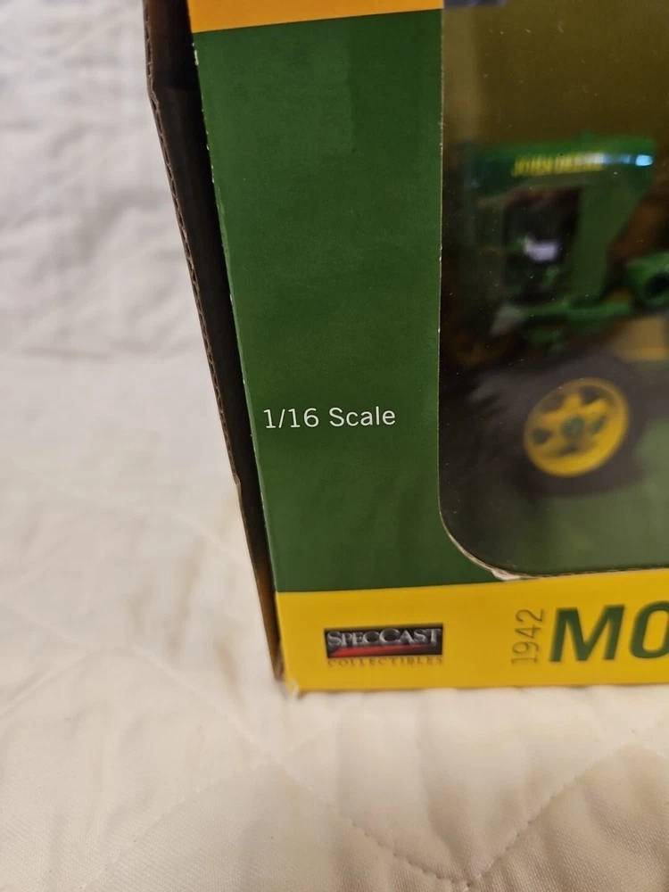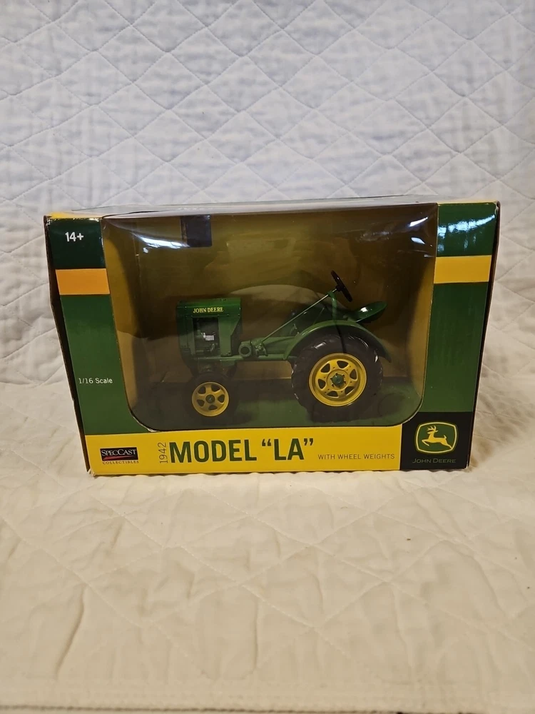 Vehicle Make:John DeereMPN:JDM045Seller Notes:“Good condition. Open box. See photos for condition.”Scale:1:16Vehicle Year:1942Country/Region of Manufacture:United StatesTheme:FarmRecommended Age Range:14+Customized:NoSeries:Two-Cylinder Letter SeriesMaterial:Diecast MetalBrand:SpecCastYear of Manufacture:2012Features:Limited EditionAge Level:12-16 Years, 17 Years & UpGender:Boys & GirlsCharacter Family:Farm EquipmentAutographed:NoModel:LAColor:GreenVehicle Type:Tractor