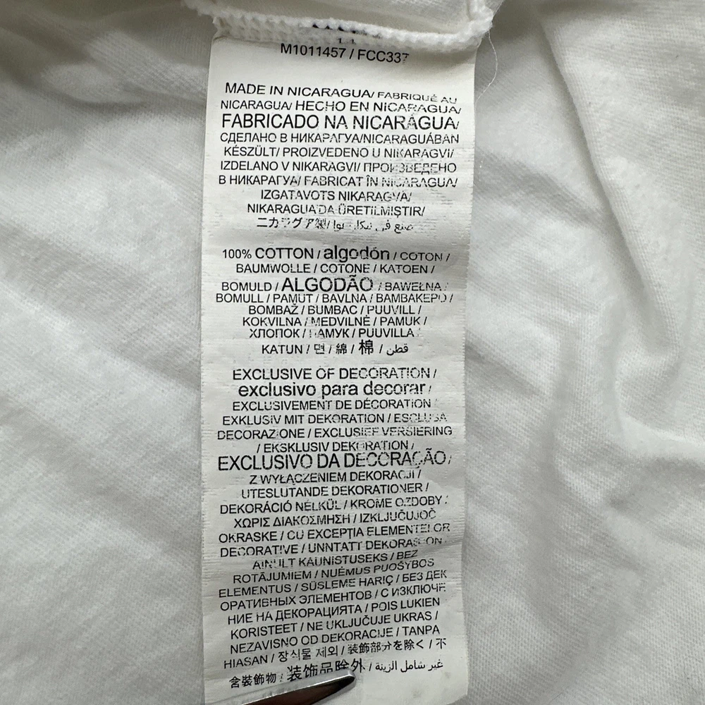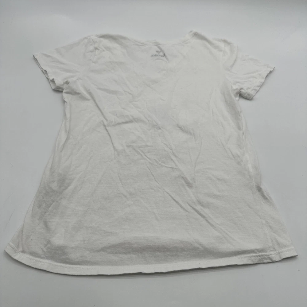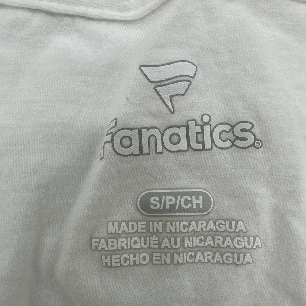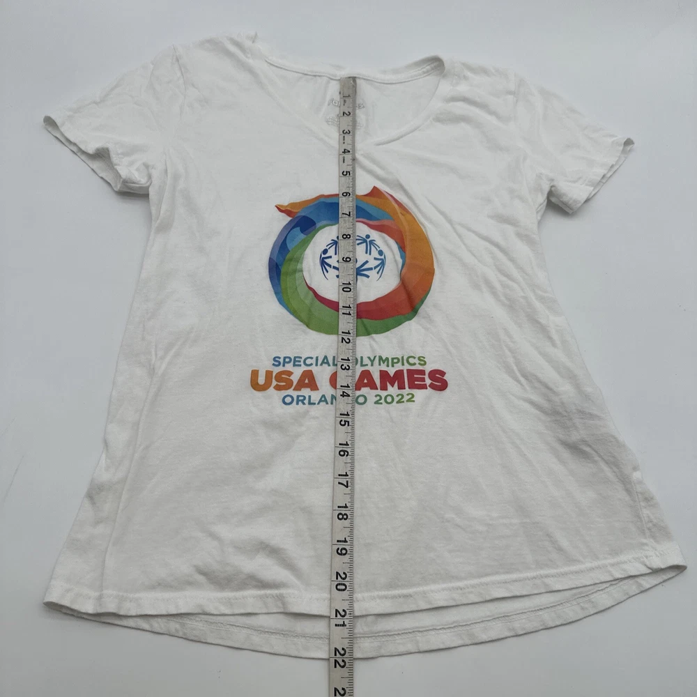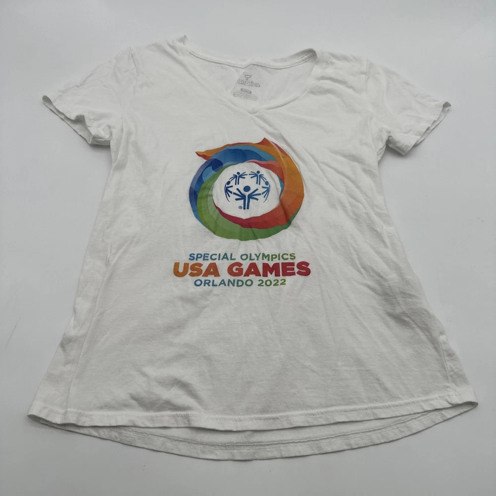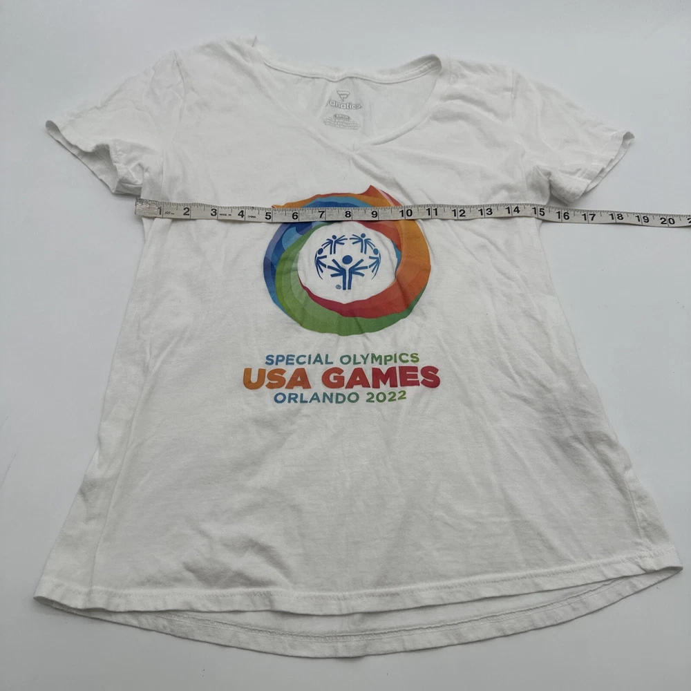 Show your support for the Special Olympics with this Fanatics T-Shirt. The white shirt features a classic graphic print of the organization's logo, making it a great addition to any casual outfit. The V-neckline and short sleeves add a touch of style to the shirt, while the pullover closure ensures an easy fit. Made from a blend of polyester and cotton, this T-Shirt is not only comfortable but also easy to care for. The regular fit is perfect for women who want to show their support for the Special Olympics in a stylish and comfortable way. Get your hands on this Nicaragua-made T-Shirt today! *Check the images above for the flaws and measurements of the item.