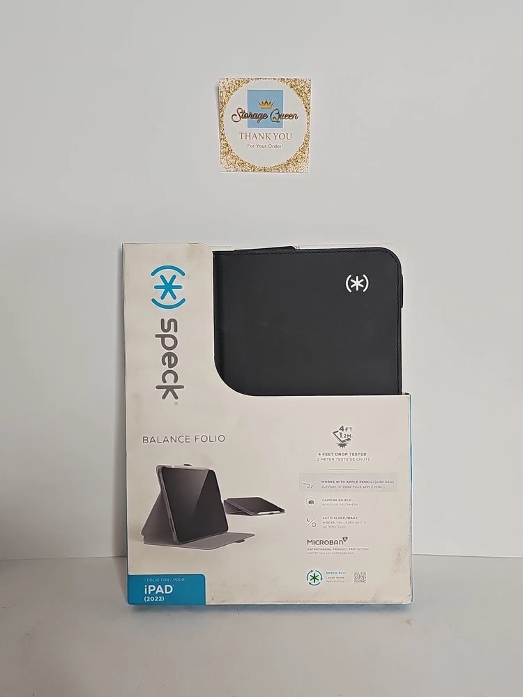 Box and case my have minor blemishes but are fully functional. This piture is a stock photo of the 19 cases in this lot of 19 This Speck Balance Folio Protective Case is the perfect accessory for your Apple iPad 10.9-inch 2022. Its sleek black design and folding folio case type provide durable protection against scratches, bumps, and minor drops. The case is compatible with Apple devices and has been specifically designed to fit your iPad perfectly. The Speck Balance Folio Protective Case is a must-have for anyone who wants to keep their iPad safe and secure. Its slim design allows for easy access to all ports and buttons, while the folding folio case type provides extra protection when the iPad is not in use. With its high-quality construction and attention to detail, this case is the ideal choice for anyone who wants to keep their iPad safe and secure.