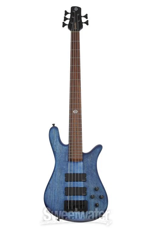 Exclusive Spector Bass with Serious Low-end Muscle "World-class" only scratches the surface of Spector's master-crafted USA NS-5 bass guitar, an instrument constructed using only the best woods and electronics available to give it standout looks and a stage-worthy sound. Its classic combination of swamp ash for the body and an exclusive oil-based finish lays a punchy tonal foundation for a pair of EMG active pickups. These pickups deliver an organic and natural tone, with open clarity and warmth only achieved with active circuitry — not to mention superior low-end firepower. Whether you prefer the comfortable body shape, high-performance feel, outstanding tonality, or elegant appearance, you'll want your hands on this Spector USA NS-5 bass — available only at Sweetwater.Illustrious tonewood recipe with show-stopping looks To give it its bold and brazen sonic base, Spector outfitted the USA NS-5 with elite-quality tonewoods proven to lend clarity and power to your playing. Sweetwater is an Authorized Spector Dealer Genuine New Item Sweetwater's 2-year warranty and 55 point inspection Spector USA NS-5 5-string Bass Guitar - Sapphire Blue, Sweetwater Exclusive 5-string Electric Bass with Ash Body, Maple Neck, Pau Ferro Fingerboard, and 2 Active Pickups - Saphire Blue Exclusive Spector Bass with Serious Low-end Muscle "World-class" only scratches the surface of Spector's master-crafted USA NS-5 bass guitar, an instrument constructed using only the best woods and electronics available to give it standout looks and a stage-worthy sound. Its classic combination of swamp ash for the body and an exclusive oil-based finish lays a punchy tonal foundation for a pair of EMG active pickups. These pickups deliver an organic and natural tone, with open clarity and warmth only achieved with active circuitry — not to mention superior low-end firepower. Whether you prefer the comfortable body shape, high-performance feel, outstanding tonality, or elegant appearance, you'll want your hands on this Spector USA NS-5 bass — available only at Sweetwater. Illustrious tonewood recipe with show-stopping looks To give it its bold and brazen sonic base, Spector outfitted the USA NS-5 with elite-quality tonewoods proven to lend clarity and power to your playing. It all starts with a swamp ash body capped with a gorgeous oil finish, keeping this bass light in weight with plenty of resonance and added bite. The USA NS-5's 3-piece maple neck feels silky smooth in the hands, capped with glass-like pau ferro and boasting a neck-through construction for easier access to the upper frets. All of this combines to form an infinitely gigable bass with stellar looks to match — best of luck putting this workhorse down once you thump through a few licks! Sculpt to success with active EMG pickups A premium instrument such as the USA NS-5 bass deserves top-shelf electronics, and its onboard EMG active pickups are more than suited for the task. With a 40 DCX pickup in both the bridge and neck positions, you can tap into fat, punchy rock tones, mid-focused jazz and fusion tones, and any combination thereof — especially when paired with a built in HAZ 18V preamp unit. This high-headroom electronics package also offers plenty of dynamic range to keep your tone punchy and vibrant — and don't worry about producing maximum bottom-end boom; this pickup combination will ensure you've got plenty of rumble on hand whenever necessary. The bass that fits like a glove Spector (with the help of Ned Steinberger) developed the contoured NS body design in 1977, prioritizing the player's comfort for possibly the first time in the history of the bass guitar. Players quickly took note, with iconic bassists such as Garry Tallent, Ian Hill, Rudy Sarzo, and countless others taking to the stage with Spector basses. This iconic body style balances well and feels supremely comfortable against your body and arm. Spector USA NS-5 5-string Bass Guitar Features: The original NS body style, acclaimed for its comfortable and sleek feel Resonant and lightweight swamp ash body topped with a gorgeous oil finish for stunning tonality and visual appeal Easy-playing 24-fret pau ferro fingerboard rests upon a "C"-shaped 3-piece maple neck Neck-through construction allows for easy access to upper frets Dual EMG 40 DCX active pickup combo provides a superior low-end punch Spector locking aluminum bridge and 1.81-inch brass nut enhance sustain and note definition Specification Detail Number of Strings 5 Left-/Right-handed Right-handed Body Shape NS-5 Body Material Maple (neck-through), Swamp Ash (wings) Body Finish Oil Color Sapphire Blue Neck Material 3-piece Maple Neck Shape C Neck Joint Neck-through Radius 16" Fingerboard Material Pau Ferro Fingerboard Inlay Mother of Pearl "SS" Logo Number of Frets 24, Medium Jumbo, Nickel Silver Scale Length 35" Nut Width 1.81" Nut Material Brass Bridge/Tailpiece Spector Locking Aluminum Tuners Spector Branded Gotoh GB7 Neck Pickup EMG 40 DCX Humbucker Bridge Pickup EMG 40 DCX Humbucker Controls 1 x volume, 1 x blend, 1 x treble, 1 x bass Strings Spector, .045-.130 Case/Gig Bag Hardshell Case RETURN INFORMATION We want you to be completely happy with your purchase from Sweetwater. If you are not satisfied with your product, you may return it for a refund of the purchase price within 30 days. If your purchase was eligible for Free Shipping, the shipping cost will be deducted from your credit or refund. Returns must be in the complete and original packaging with all accessories and complete documentation (Owner's Manual, warranty card, quick start guides, etc.), show no signs of wear or use, and include a Return Authorization number or be subject to a restocking fee.