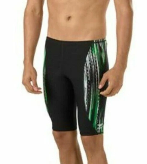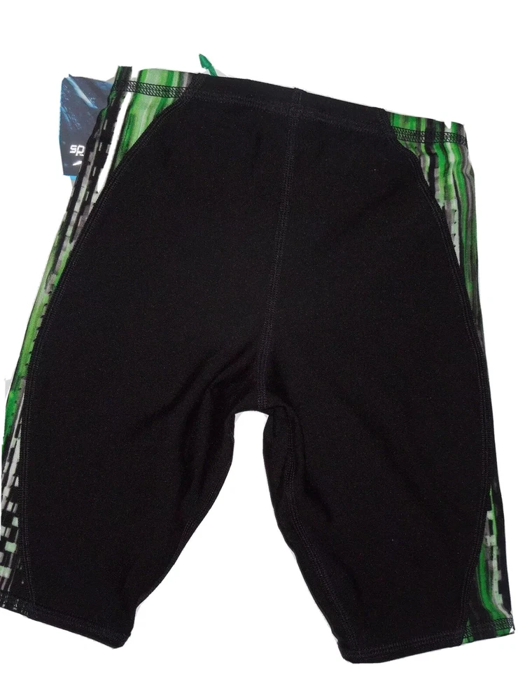 Speedo Deep Within Jammer competition swim shorts size: youth 22 color: Black, Speedo green Speedo longest lasting and best selling training suit fabric Chlorine resistant and superior color retention Unique four-way stretch technology maintains body hugging shape 50 percent polyester, 50 percent PBT K104
