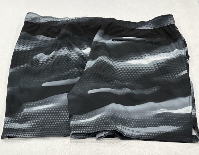 Kirkland Signature Men's Stretch Swim Shorts, Mix Grey / Blue Stripes, Size M