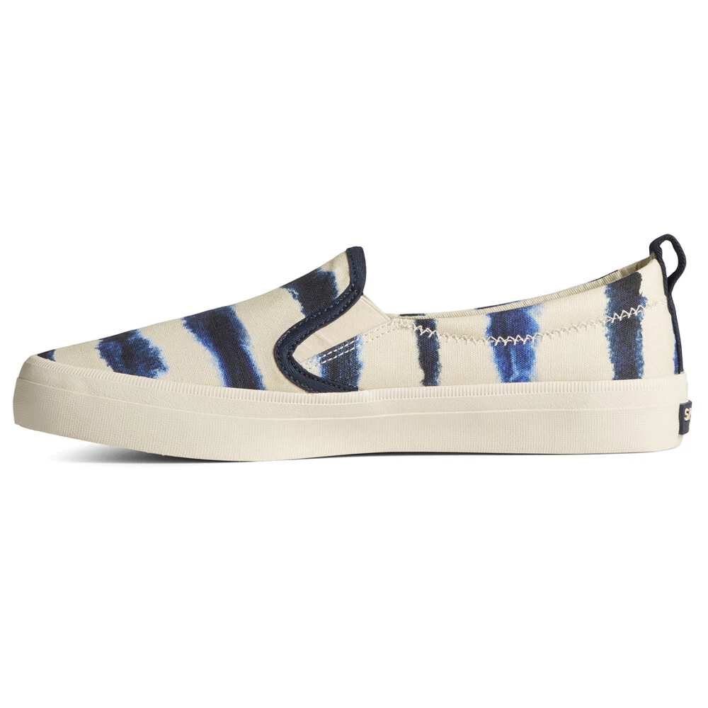 Crest Tie Dye Slip On Sneaker Product Details Canvas upper Slip on entry Memory foam insole Non marking rubber outsole The Sperry Crest Twin Gore style is the perfect staple for any casual wardrobe. This stylish slip-on sneaker is crafted with a textile upper in an easy slip-on silhouette for on-the-go style. Additional Details Color: White Occasion: Casual Gender: Womens Age: Adult Brand: Sperry