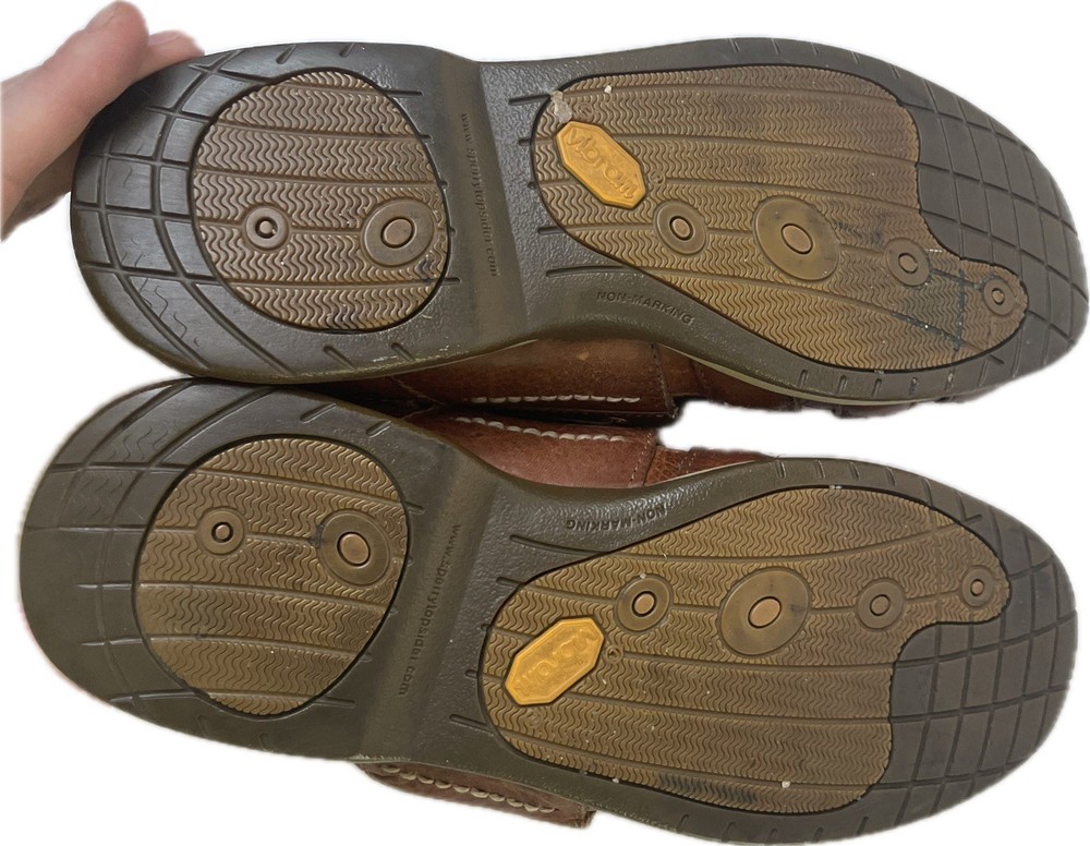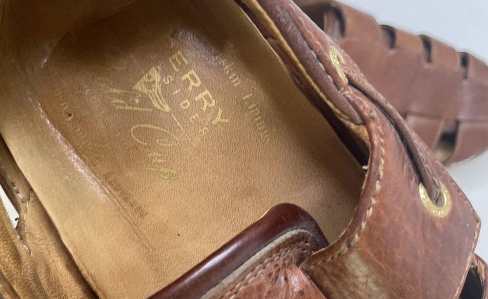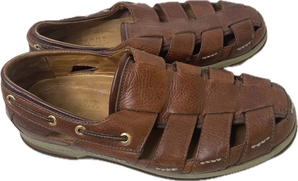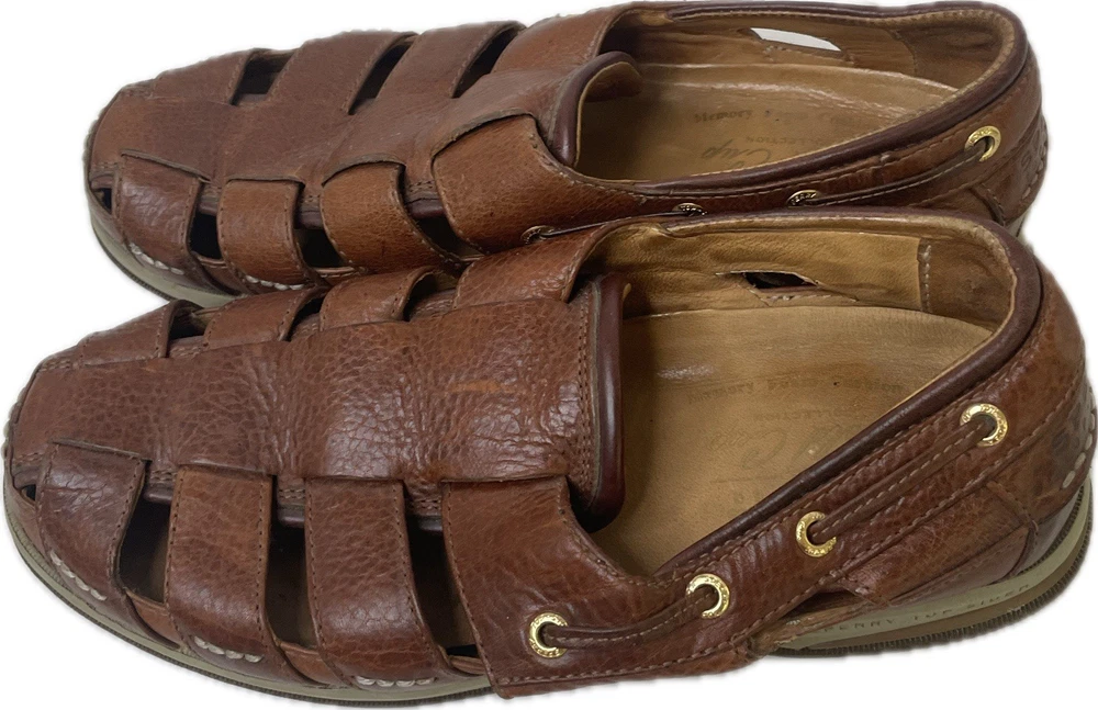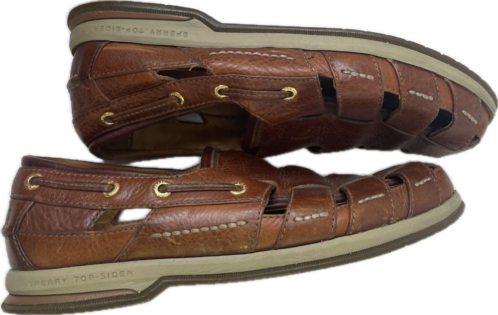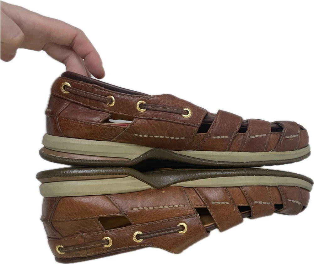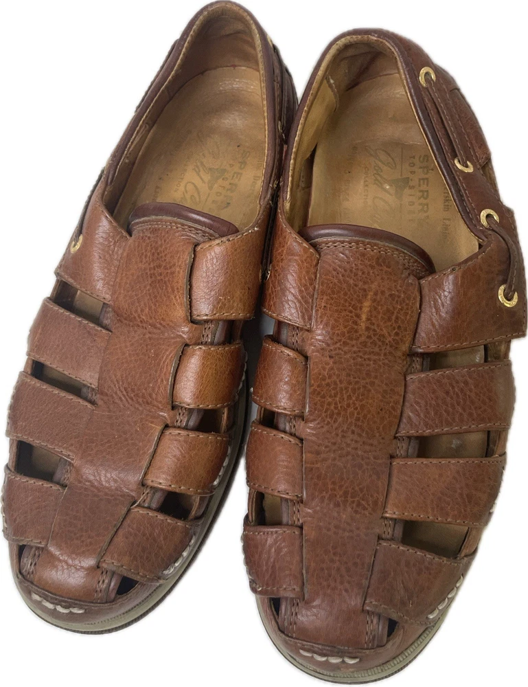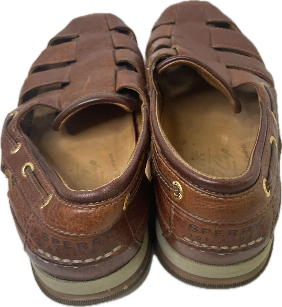 Sperry Top Spider Gold Cup Mens Leather Deerskin Lining Fisherman Sandals 8 Great condition