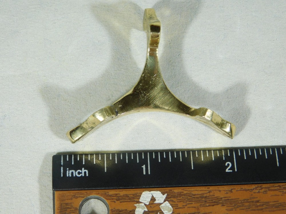 Hello, here is a Small sized brass / gold color Sphere display stand! These are great for f or Marbles, Eggs, Globes, Balls, Spheres, Golf Balls or any other items you may want to display! This Stand measures 3/4 " high by 1 7/16" wide and the top or holding area is 5/8" wide. It will hold eggs up to 3.25 inches tall and spheres up to 3 inches wide. Combine and save on shipping! INTERNATIONAL BUYERS PLEASE NOTE: Import duties and taxes are not included in the item price or the shipping charges. These are the buyers responsibility. If you are concerned about them, please check with your country's customs office before purchasing. RETURN POLICY We guarantee you will be satisfied with your item or we'll refund your purchase price, less shipping charge, upon safe return of the item in original condition within 30 days. Prior to returning the item, please contact us within 48 hours of receiving item. If your item arrives damaged, please contact us within 24 hours of receiving as we will be happy to resolve any issue. Buyer is responsible for all return shipping charges.