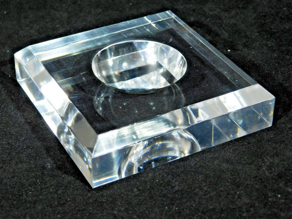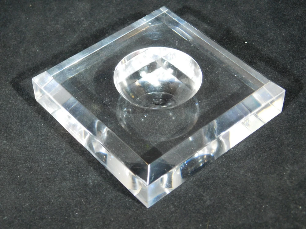 Hello, here is a Large sized square shaped clear LUCITE Sphere display stand. These are great for displaying spheres, eggs, balls, marbles, globes or any other round collectables that you may have! It measures around 7.47cm or 3 1/16" wide and the diameter of the center indentation is 3.72cm or 1 1/2" wide and it Stands 1.8cm or 3/4" high . Combine and save on shipping! INTERNATIONAL BUYERS PLEASE NOTE: Import duties and taxes are not included in the item price or the shipping charges. These are the buyers responsibility. If you are concerned about them, please check with your country's customs office before buying