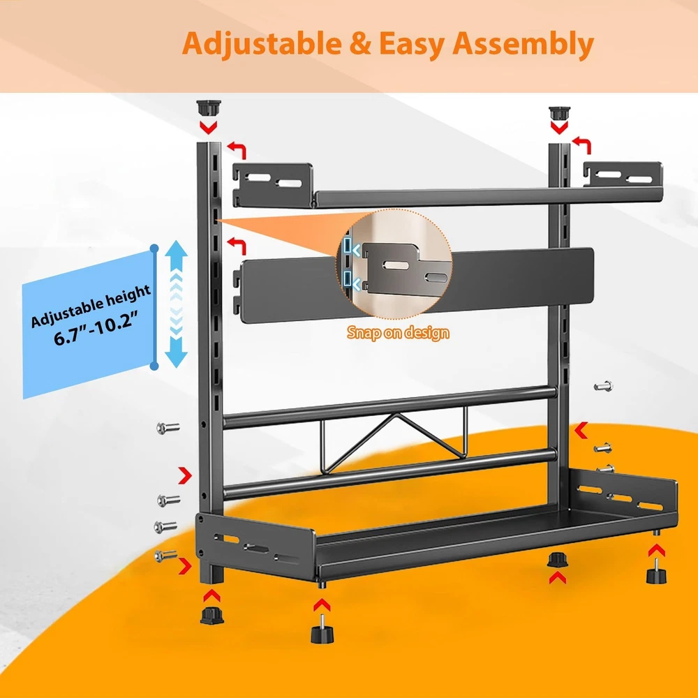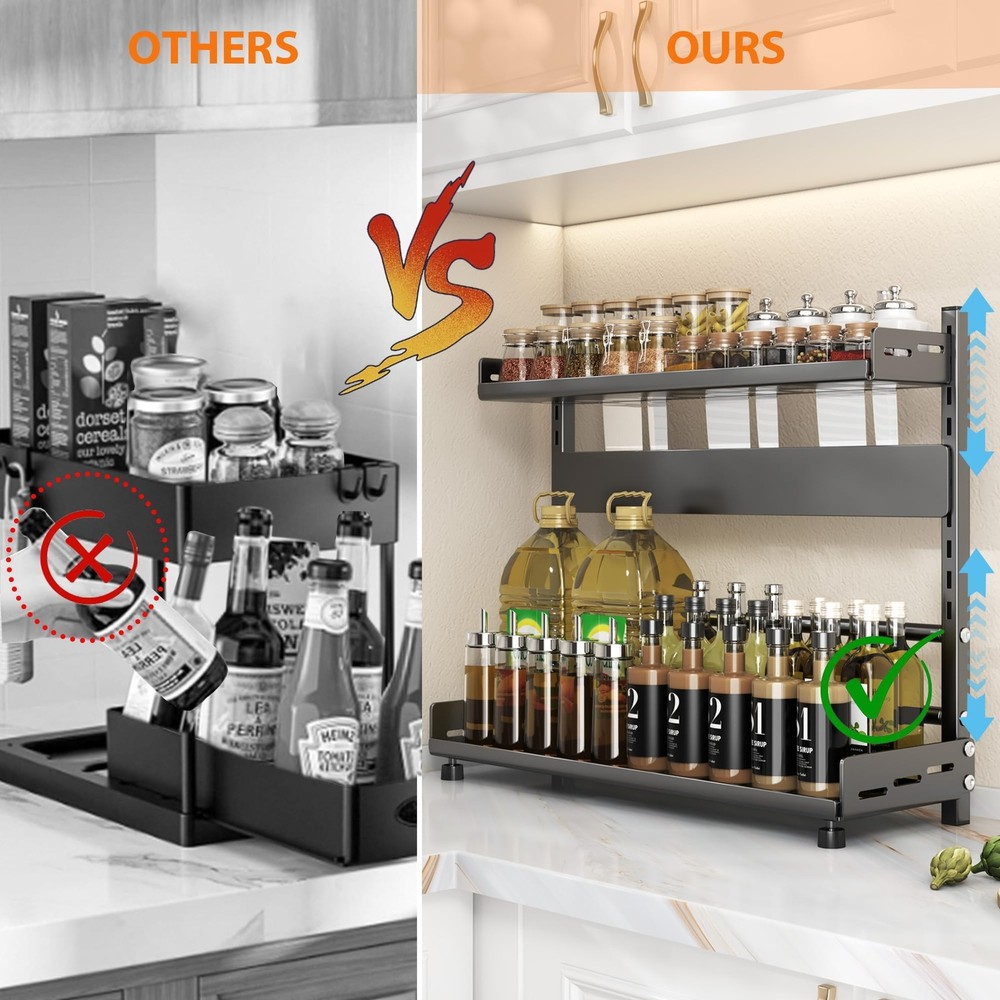 spice rack spice organization for cabinet spice rack organizer for cabinet seasoning organizer spice organizer kitchen organizers and storage countertop organizer kitchen cabinet organizer spice rack for countertop cabinet shelf organizers spice organizer for cabinet spice cabinet organizer cabinet spice organizer spice rack for cabinet seasoning organizer for cabinet spices organizer for cabinet spice racks for inside cabinets kitchen spice organizer shelf organizers kitchen cabinet Spice Racks Organizer counter spice cabinet organizer layer spice spice organization for cabinet kitchen counter shelf kitchen organizers and storage spice rack for kitchen cabinet spice rack for countertop ⭐【Unique Design】①We have 2-tier of this kitchen organizer countertop to store different types and sizes of spice bottles or jars. ② The tilting design makes it easy for you to quickly find the spices you need and bring the cluttered spice bottles into order. ③ The second tier of the spice rack shelf features a knife rack, suitable for storing all kinds of knives. This not only helps to keep your kitchen neat and organized, but also ensures safe storage of knives to avoid accidental injuries. ④The spice rack organizer is adjustable and removable design for easy cleaning at any time 👍【Rust-Proof Durable Material】Our kitchen countertop organizer made of premium carbon steel material, the shelf is sturdy to use and easy to clean, rust-proof and water-proof and free standing. The spice rack for countertop load bearing capacity is also very strong, single layer can bear a maximum of 33LB. Each evenly well-polished corner can keep you from being scratched, safe, and unharmed 🌟【Height Adjustable Spice Organizer】This cabinet spice organizer is designed with clasps, which allows you to adjust the spacing of the rack according to different spice bottle sizes. The feet are also adjustable to ensure that all bottles and jars are placed in a stable manner to avoid shaking or sliding during use. This design not only improves ease of use, but also increases safety in use ✨【Versatile Use】Save your counter space! This kitchen organizers and storage helps you utilize in any area of the house to store, sort, and easily organize items. Usable in kitchen, bathroom, cabinets, shelves, pantry and more. Save the time and hassle of searching through cabinets for desired ingredients and spices 🛠️【Easy Installation】 Our height-adjustable spice rack for countertop is very simple to assemble. And it is detachable easily for daily cleaning. It's a breeze to assemble this sturdy storage rack with the help of the detailed assembly diagram. Whether as a thoughtful gift for others or for personal use, anyone who loves staying neat and modern style will appreciate this spice organizer for cabinet! Buy with confidence, we are committed to providing quality products