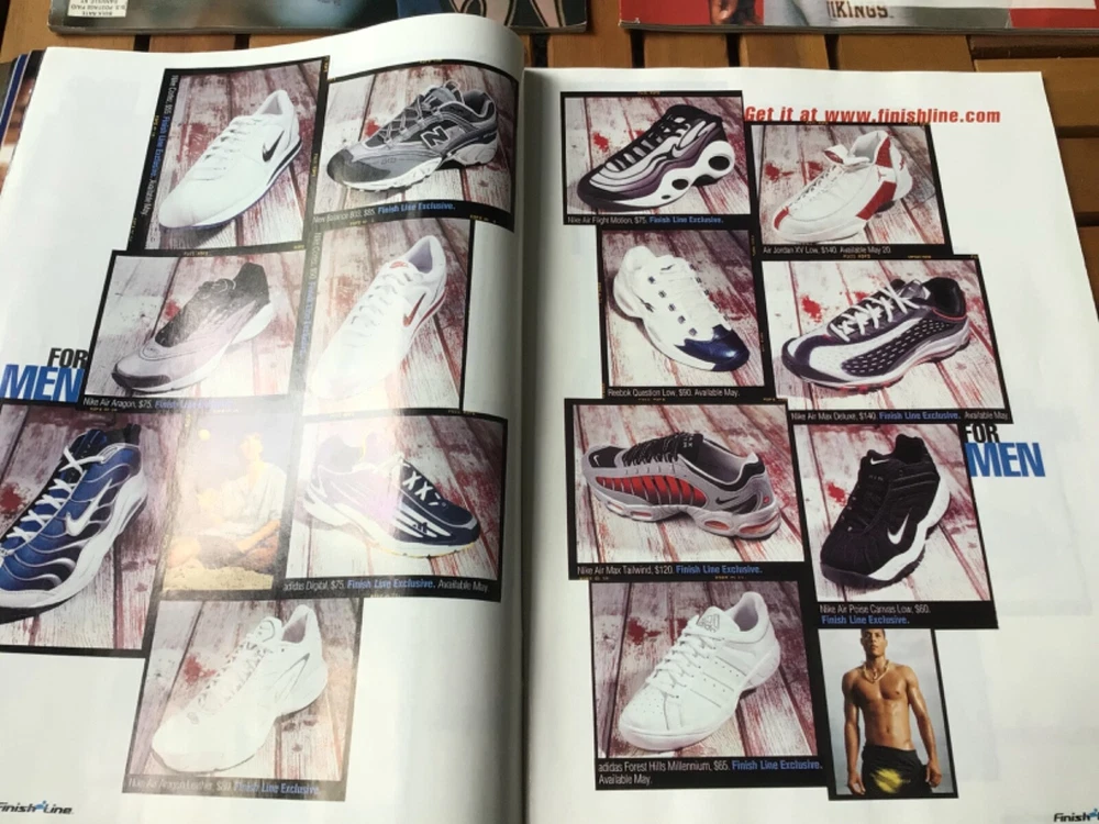 This is an amazing collection of sports magazines from Finish Line back in the late 90s and early 2000s. Highlighting sports culture, running shoes, basketball shoes, apparel and more. Various condition with some wear. Fall 1997 (missing cover) Holiday 1997 Early Spring 1998 Late Spring 1998 Holiday 1999 Late Spring 2000 Back to school 2000 These really take you back to a great time.