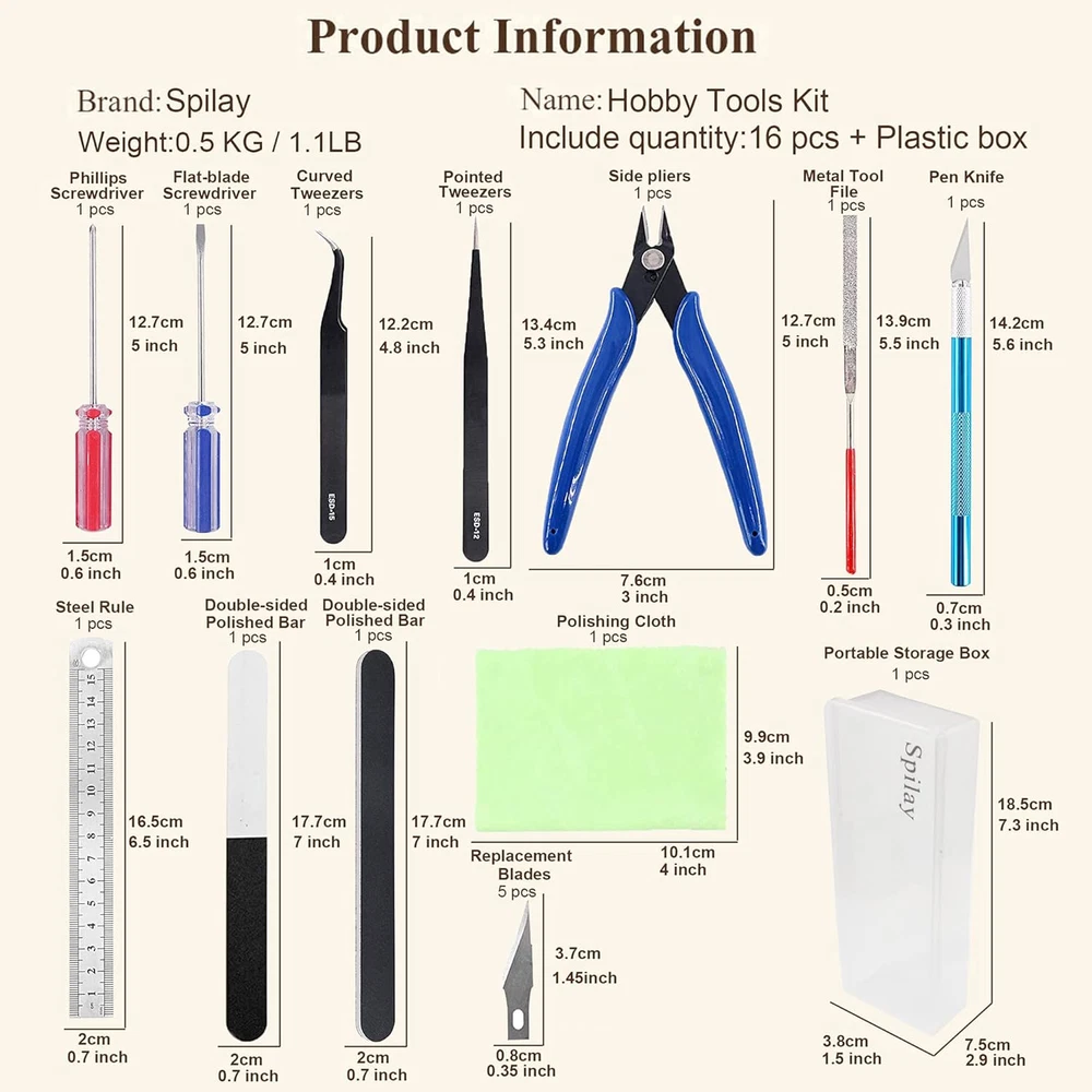 ????????????Great for Hobby Minatures & DIY Crafts???The modeler basic tools set is suitable for a beginner and advanced modeler as well.Use the tool kit can building, clip,measure,polishing, shaping, cleaning, cutting, you can use it to assembling manufacture and repair many models,such as miniature dollhouse,cars, robots, airplane, cartoon, buildings, airplanes toy and other DIY crafts. ????????????Craft Tools Kit Included???Screwdriver * 2pcs???Phillips & Flat-blade???,Tweezers with plastic caps * 2pcs???Curved & Pointed???,Side pliers * 1pcs???Double-sided steel ruler * 1pcs???CM / IN???,Double-sided Polished bar * 2pcs,Metal Tool file * 1pcs,pen knife in a protection safety cover * 1pcs,Replacement blades * 5pcs???Polishing cloth * 1pcs,plastic box * 1pcs ????????????High Quality -Durable & Accurate???Durable???Most tools are made of high strength stainless steel???Anti-skid, Anti-static, Anti-acid, corrosion, and anti-magnetic design???Can be used for a long time???Accurate???With accurate molds, perfect for hand to work, the resulting tools are Lightweight, portable, and comfortable to grip??? ????????????Perfect Hobby Tools Kit for Dollhouse???This tool kit will be very useful to you when you want to assemble miniature doll house, it will make the assembly process easier, tweezers can easily pick up wooden furniture and accessories, Side pliers and pen knife can cut some paper accessories And wood blocks, the Double-sided Polished bar and Metal Tool file can polish the spines of wood, and the steel ruler can prevent sizing errors. Screwdriver can install music box etc., ????????????Lightweight & Portable???Model tools are lightweight and portable. When you use them, you will feel more handy.We provide a plastic box, plenty of space???easy to carry and store, prevent loss,you can building your products anytime and anywhere. Looking forward to your masterpiece!