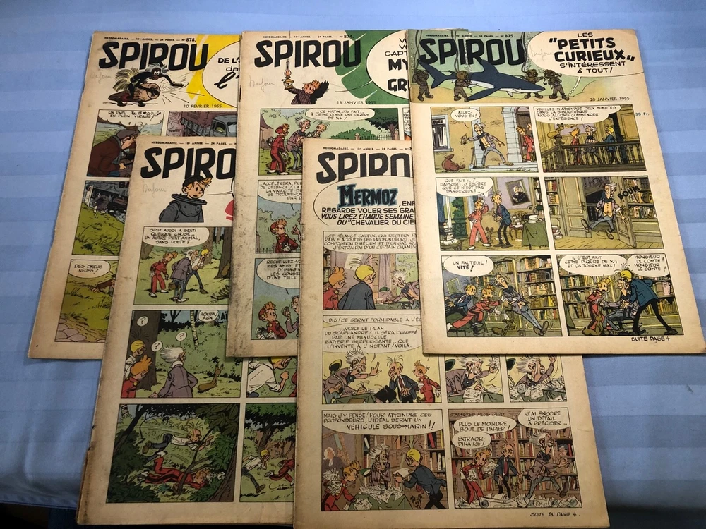 Spirou 1955 Weekly French Editions, set of 5, used 874 875 876 877 878 I brought an extensive collection of Spirou or journal de Tintin from France and will progressively sell these since it takes time to list