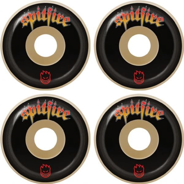 Spitfire Wheels Formula Four Skateboard Wheels These brand new Spitfire Wheels wheels are built to last! Coming in at 52mm in diameter and 99a in hardness, these bad boys are ready for action and packed with steez. Spitfire Wheels Formula Four Skateboard Wheels are sold in (1) set of four (4) wheels. You know, because that's how many wheels you need on a skateboard. Speaking of skateboards, did you know that Warehouse Skateboards sells those too? We're not all wheels, and there's plenty of wood to go around. Note: Bearings not included. Features: One (1) set of 52mm Spitfire Wheels Formula Four Skateboard Wheels; includes four (4) wheels Diameter: 52mm Durometer: 99a Color: Script Natural