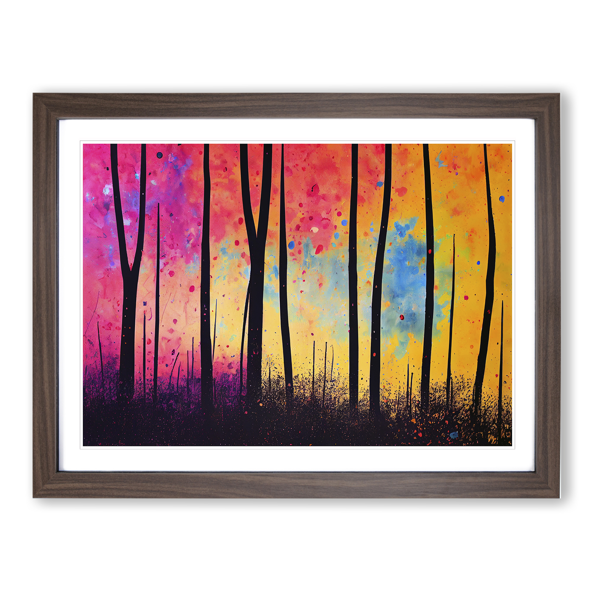 Transform your living space with our captivating framed wall art prints. Crafted in the UK, the stunning Splashed Forest Vol.6 Abstract framed print is designed to elevate your home decor. We utilise high-quality inks to ensure the colours of the artwork are rich, vibrant, and true to life. The print seamlessly fits within a contemporary frame, creating a stylish wall art picture that is ready to hang in your living room, lounge, bedroom, dining room and home office. Visit Our Shop eBay Message Framed Art Print Enhance your living space and showcase your individual style with our framed prints. Each design is printed upon premium art paper with fade-resistant inks, ensuring the colours remain rich and vibrant for years to come. The print is encased in a ready-to-hang frame, offered in black, oak, or walnut, and safeguarded by shatter-resistant Perspex. An ideal addition to your home, and the perfect gift choice. Like what you see? Visit our eBay store to see more. Premium Quality : The design is printed on quality art paper, enhanced with fade-resistant colours. Ready to Hang : The frame is pre-fitted with hanging hardware, making wall mounting simple, safe and secure. Frame Dimensions : A4 - 25 x 34 cm / A3 - 34 x 46 cm / A2 - 46 x 64 cm. Fast Shipping : Prompt, reliable UK-based dispatch. Customer Satisfaction : Our priority is your satisfaction which is why we offer a hassle-free return policy. Payment You can pay for your order safely and securely via credit or debit card, Apple Pay, Google Pay, and PayPal. Shipping Production times are 1 to 2 working days. Orders are sent via Royal Mail or Evri (depending on size). Returns For your peace of mind, we have a 30-day returns policy in place. Please, contact us for more details. At Big Box Art, we are dedicated to providing high-quality wall art and decorative homeware items. From the outset, we've focused on excellence in our products, service, and reputation, continually enhancing our standards. With an extensive selection of designs, you're certain to discover the perfect piece to suit your taste. ? Copyright 2021, Big Box Art. All rights reserved. Made with by eBayshopdesign.org