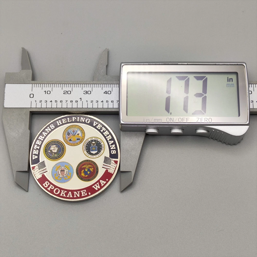 TITLE-- Spokane WA Veterans Helping Veterans Challenge Coin SIZE-- Measures approx. 1.73 inches Used coins have imperfections, please see pictures SHIPPING -- Ships within 5 days of receiving payment. Your purchase will be carefully packaged and you can always check tracking information on eBay Purchase two and more and get a discount on shipping SERVICES -- If you have any questions, you can contact us at any time, we will reply you as soon as possible to solve your problem If you are not satisfied with your purchase for any reason, please contact us before leaving neutral or negative feedback, we will solve the problem for you properly