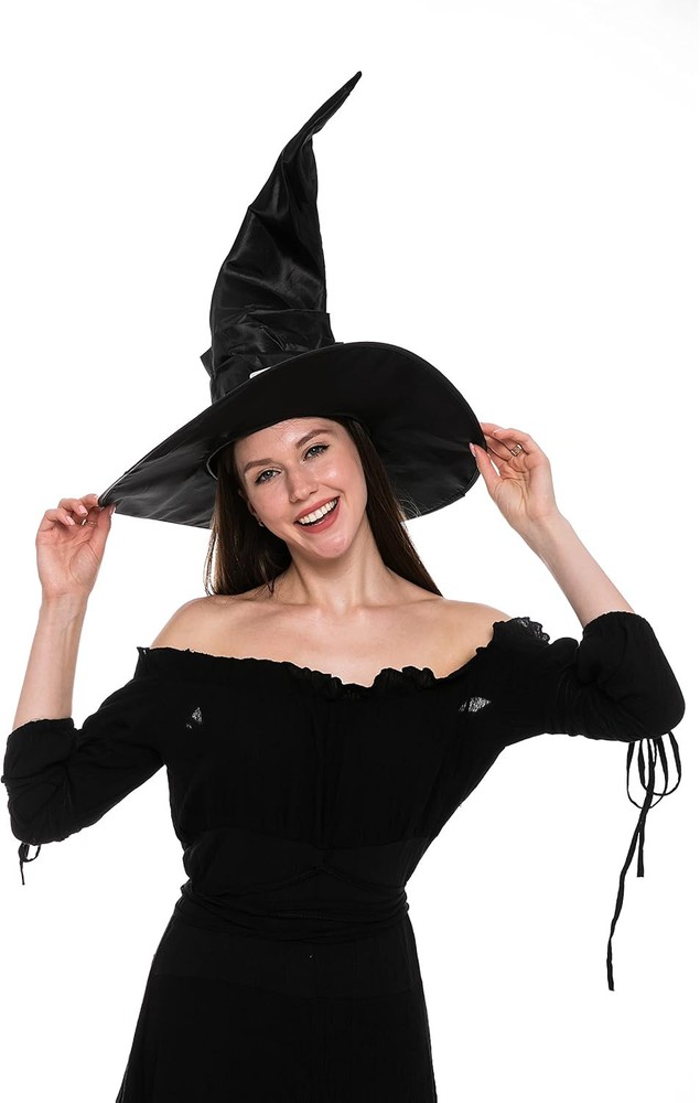 Spooktacular Creations Witch Hat for Women, Large Black Witch Wizard Hat, Pointed Ruched Halloween Witch Hat Product Details Package Dimensions : 11.77 x 9.57 x 3.86 inches; 3.53 ounces Manufacturer recommended age : 3 years and up Item model number : 20762 Department : womens Manufacturer : Joyin Inc. Country of Origin : China