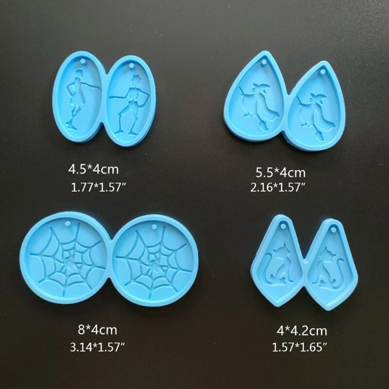 Halloween Earring Resin Silicone Epoxy Casting Jewelry Making Features: and high Suitable for earrings, necklace pendants, jewelry, auto parts, for key chain on phone, bag decorations, Keep the resin jewelry molds interior smooth and before use, then it’s easy to out your finished item after it’s completely cured the epoxy molds with soap water and storage them away from direct sunshine and Also you can add various glitter sequin, dry flower and pearls to make your own Various Halloween applied for various occasions, such as Halloween parties, gathering, outdoor traveling, Christmas parties, New Year's Eve, daily dressing, Great gifts for your family and Specifications: Color:Blue Silicone Size1: 4.5x4cm/1.77x1.57in Size2: 5.5x4cm/2.16x1.57in (More detailed,please see photo.) Quantity: 1pc/4pcs Package Includes: 1x Earring Mold note: Please allow a little error on the size due to manual measurement. The color might exist slightly difference due to different displays.