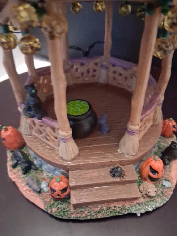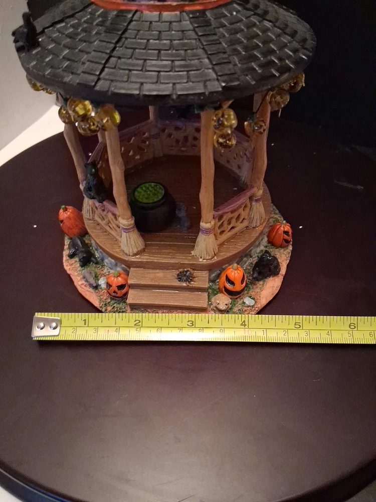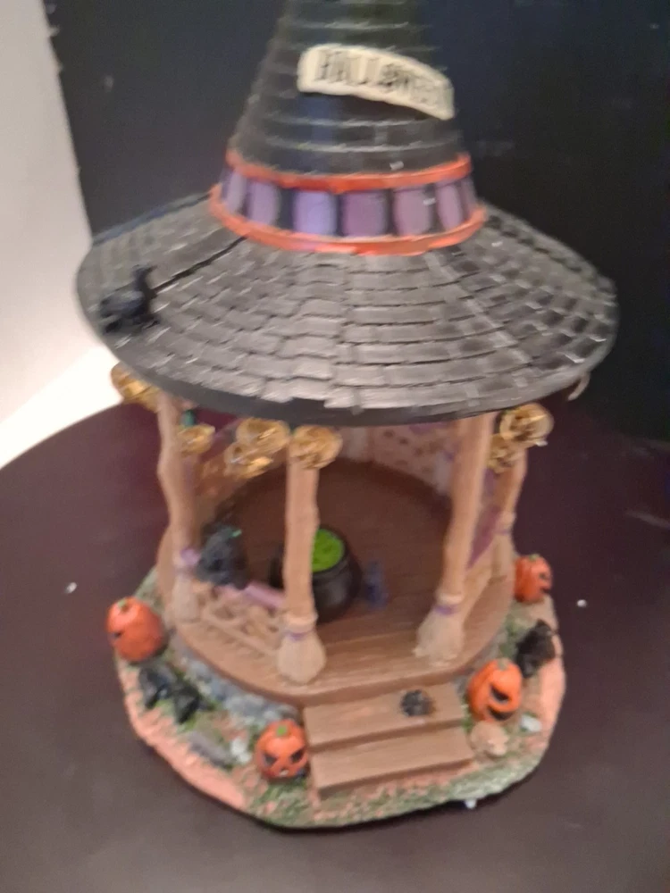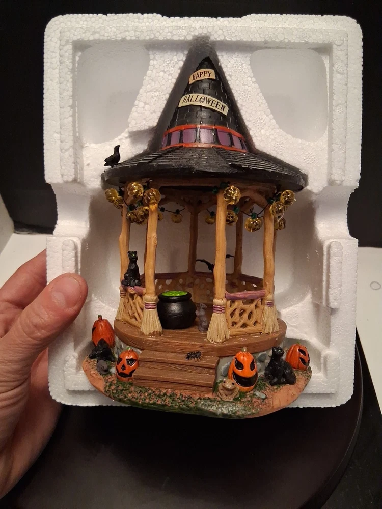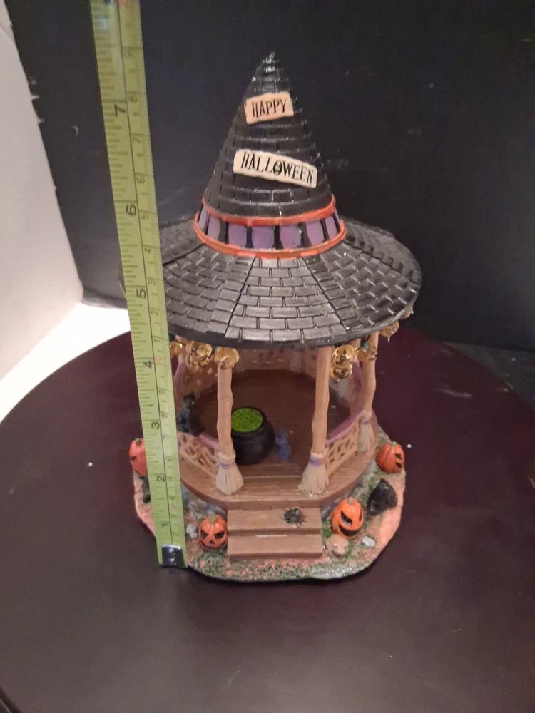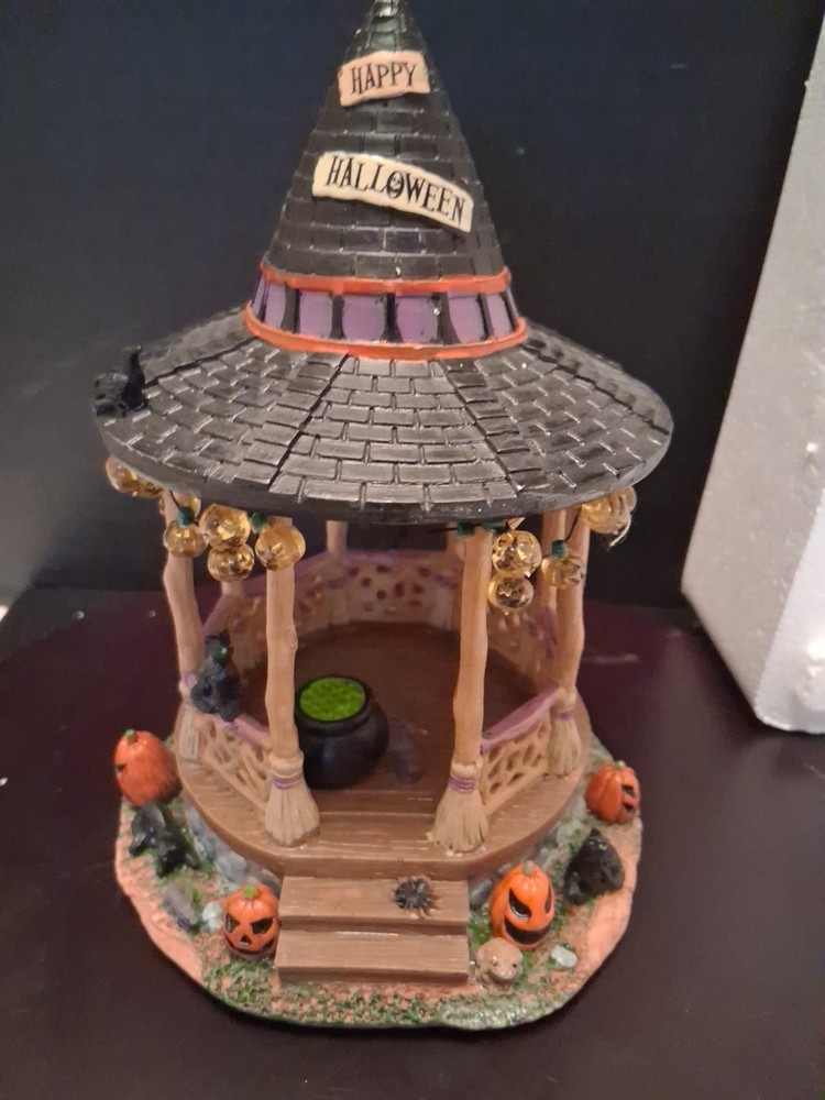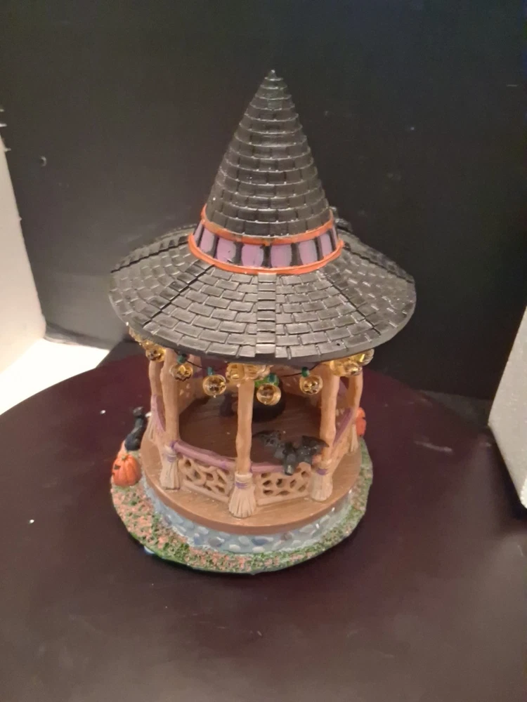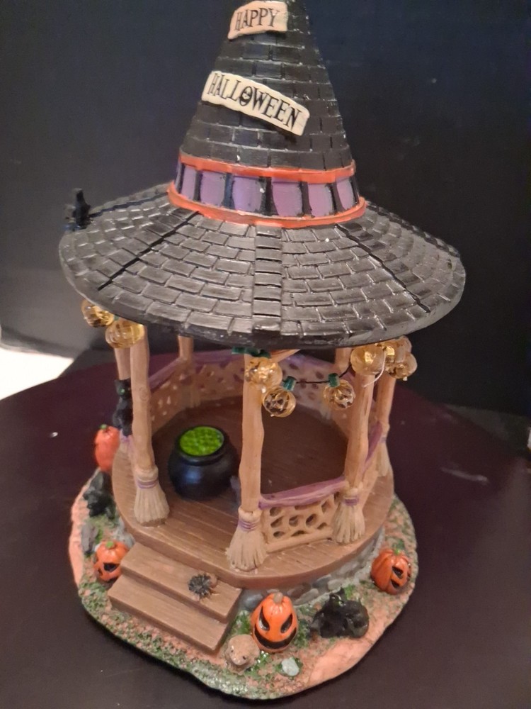Add a touch of whimsy to your Halloween Village with the Lemax Spooky Town Witch Gazebo. This charming accessory encapsulates the festive spirit of autumn, complete with resin craftsmanship that captures the eerie essence of Halloween. It's a delightful piece for collectors and seasonal decor enthusiasts alike. Cute estate find like new condition see pictures for details perfect addition to any Halloween display could make a great gift shipped right out USPS ground advantage The intricate detailing of the Witch Gazebo reflects the quality and creativity of the Lemax brand, known for their seasonal collections. Whether you're creating a spooky tableau or accenting your fall display, this gazebo adds a magical element to any setting, sure to enchant guests and trick-or-treaters.