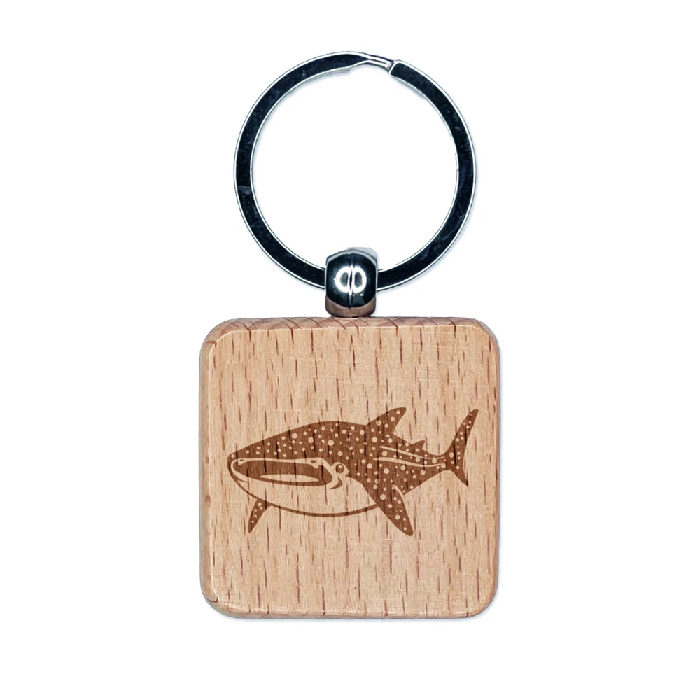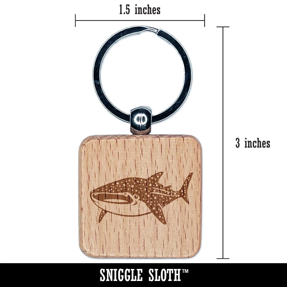 Spotted Whale Shark Engraved Wood Square Keychain Tag Charm