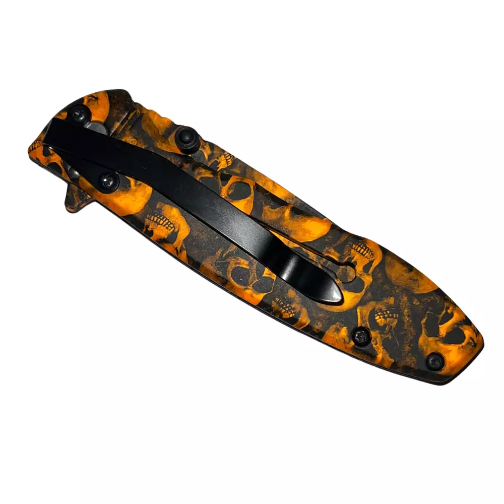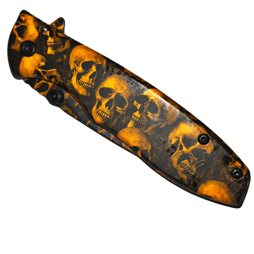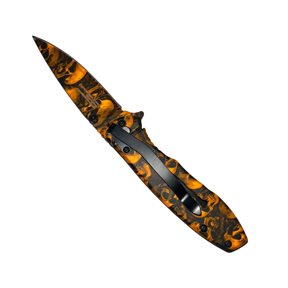 Undead survival has never been so easy with the Z-Slayer spring-assisted knife, skulls! This knife features some of the best specs of any Trigger Action knife out there, making it the ultimate pocket knife for Undead annihilation. The Trigger Action blade ejects with ease and has a razor-sharp blade edge, making it especially easy to slice up Undead flesh in a foggy graveyard. The Z-Slayer series never disappoints, and this knife is no exception, featuring the Z-Slayer logo etched on the blade. Features: Undead skulls finish Super fast Trigger Action blade Real surgical steel Razor-sharp blade edge - 2.75 inch blade Pocket clip included on handle - 3.75 inch handle Lightweight knife only 3.7 ounces Get your hands on this knife and never be without Undead protection. We strive for positive Feedback on all transactions. Your satisfaction is very important to us, if you experience a problem of any kind with your purchase please contact us first before leaving any feedback or opening any claims, any issues will be resolved more efficiently if you contact us first and deal directly with us. We do stand behind our products and will do anything in our power to make sure that you feel satisfied with your purchase. If you are not happy with your purchase, quality, DOA items. PLEASE email us , We would be more than happy to replace the item. Thank you for the cooperation.