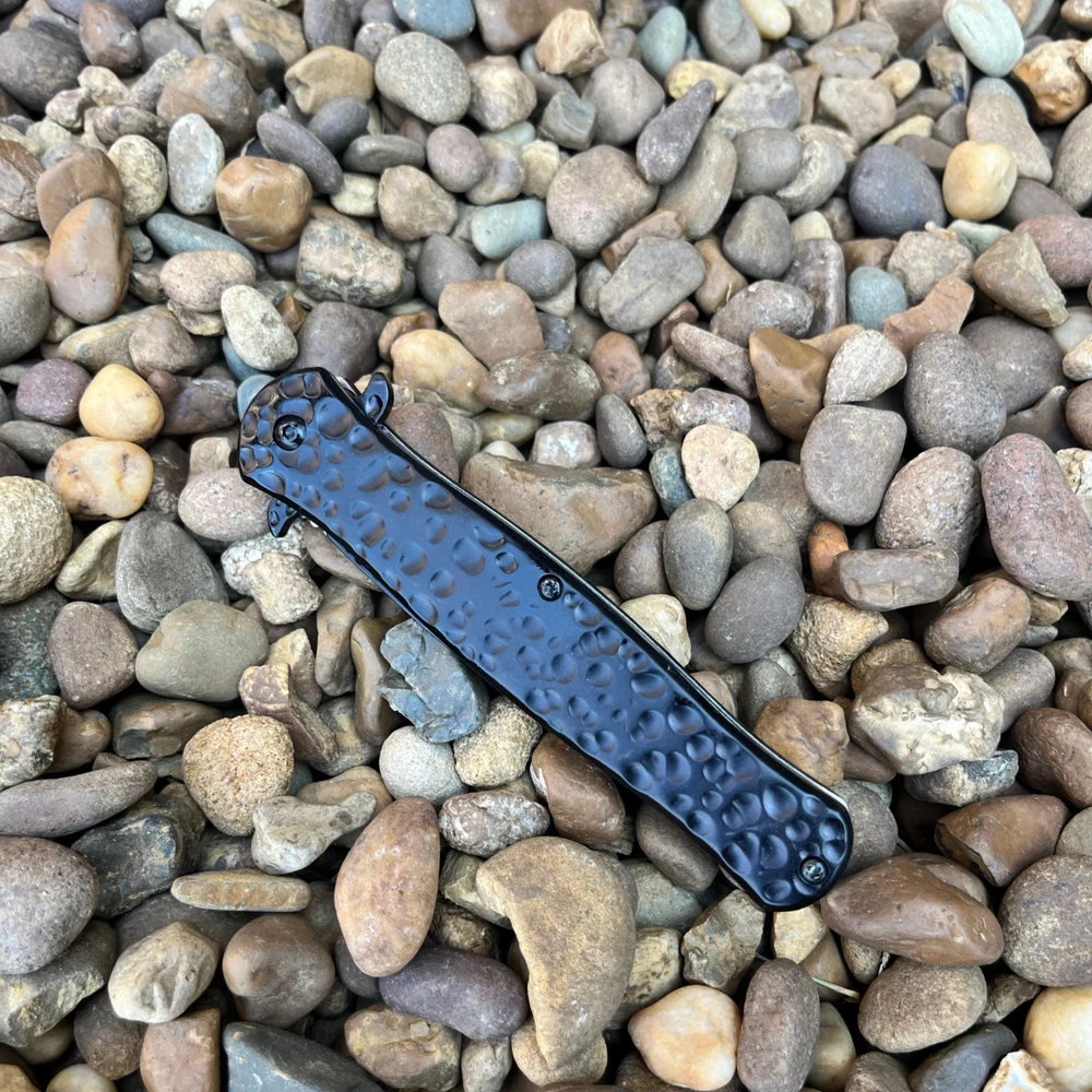 Introducing our premium 8.5" stiletto knife, a masterpiece crafted with precision and style. The striking hammered black finish adds a touch of modern sophistication, while the lightning-fast assisted opening mechanism ensures you're always ready for action. Key Features: 8.5" Overall Length: Commanding presence and impressive size. 4" Stainless Steel Blade: Durable and razor-sharp cutting edge. Hammered Black Finish: Unique and eye-catching design. Spring Assisted Opening: Quick and effortless deployment. Black Handle: Stylish and ergonomic for a comfortable grip. Perfect for: Outdoor enthusiasts Knife collectors Everyday carry (EDC) Tactical purposes Elevate Your Knife Collection Experience the perfect blend of form and function with this exceptional stiletto knife. Order yours today and discover the power and style of Italian craftsmanship. We strive for positive Feedback on all transactions. Your satisfaction is very important to us, if you experience a problem of any kind with your purchase please contact us first before leaving any feedback or opening any claims, any issues will be resolved more efficiently if you contact us first and deal directly with us. We do stand behind our products and will do anything in our power to make sure that you feel satisfied with your purchase. If you are not happy with your purchase, quality, DOA items. PLEASE email us , We would be more than happy to replace the item. Thank you for the cooperation.