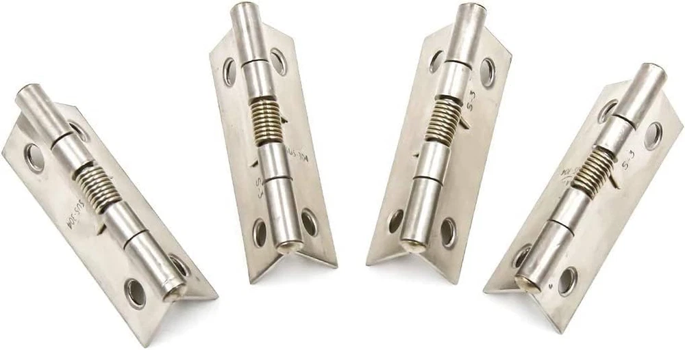 Package Content: 4 x Spring Hinge Self opening design, better meet your needs and requirements. Made of premium 304 stainless steel for better rust resistance. Leaf Thickness: 1mm/0.04"; Screw Hole Diameter: 5mm/ 0.2". Length: 50mm / 2"; Closed Width: 19.5mm / 0.77", Open Width: 36.5mm /1.44". Dimension Length: 50mm / 2" Leaf Thickness: 1mm/0.04" Open Width: 36.5mm /1.44" Closed Width: 19.5mm / 0.77" Screw Hole Diameter: 5mm/ 0.2" Package Content 4pcs x Spring Hinge Product Features Self opening design, better meet your needs and requirements. Made of premium 304 stainless steel for better rust resistance. Brushed Steel Finish -Durable Brushed Steel Finish, resists tarnish and corrosion from daily use. Please Note 1.Hinge is very strong but cannot be adjusted once they are fitted. 2.Screws are NOT included.Each hinge needs 4 screws to mount. 3.Please allow 0.5inch differences due to manual measurement. 4.The color of items may be slightly different from the pictures due to the light and screen difference.
