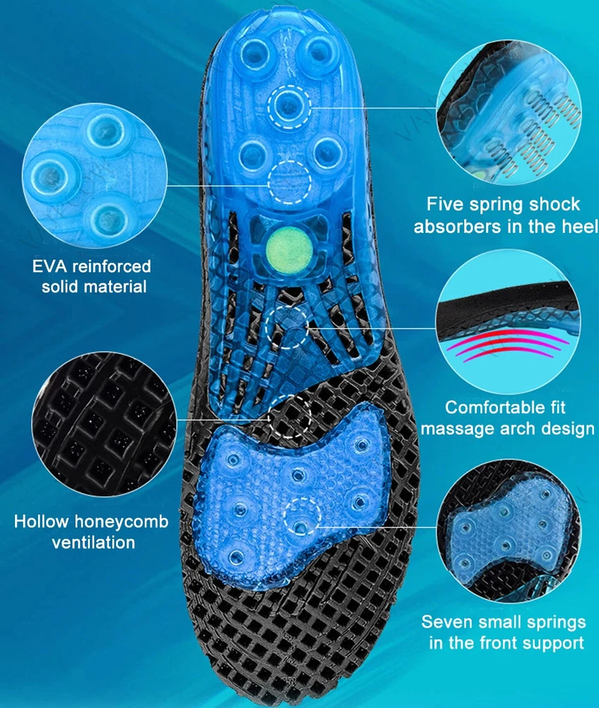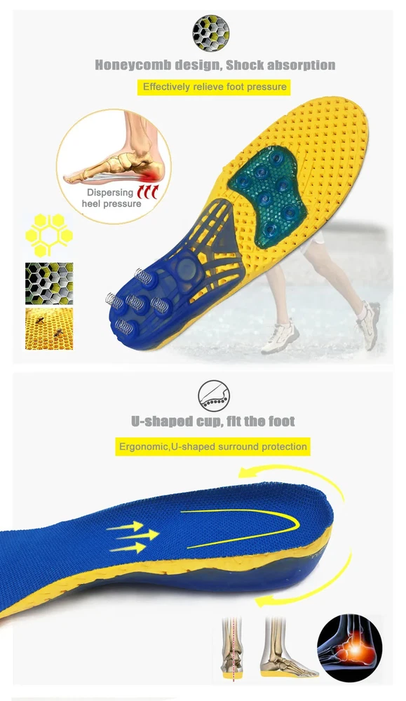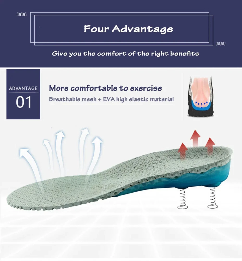 EVA Spring silicone sole insole flat feet orthotic insoles arch support orthopedic inserts Plantar Fasciitis,Feet Pain,foot care Material: EVA Invisible height increase and instant taller Shock absorbent, reduces muscular aches and pains Compatible with both sport and regular shoes Stainless steel is the abbreviation of immortal acid-resistant steel, which has high mechanical strength and corrosion resistance, and strong gloss. Features: Use high quality ventilate fabric, nonpoisonous and harmless Stoma design allows better air circulation inside your shoes Full-size insoles provide better support and make your feet more comfortable Help reduce pain and increase comfort when walking and standing Easily Trimmable by Cutting To Your Exact Size