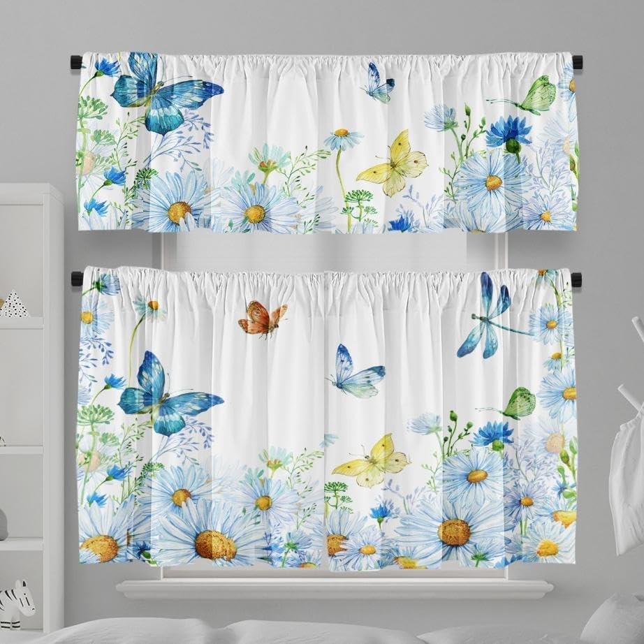 Size: 1 panel valance (18 x 52 inch) & 2 panel tier curtains (36 x 52 inch) Unique Design: Add a whimsical and vintage touch to your kitchen or dining room with these kitchen curtains. The adorable design paired creates a delightful and focal point in your home decor Complete Window Ensemble: This curtain set includes both short curtains and a matching valance, ensuring a coordinated and stylish window treatment. The valance adds an extra layer of design to your windows, enhancing the overall rustic and retro ambiance of your space High-Quality Fabric: Crafted from premium-quality fabric, these curtains offer both durability and visual appeal. They are designed to withstand daily use and are easy to maintain, making them a practical choice for frequently used kitchen and dining areas Effortless Installation: Featuring user-friendly rod pocket construction, these curtains are easy to hang on standard curtain rods. You can quickly update your decor without the need for professional installation, saving you time and effort