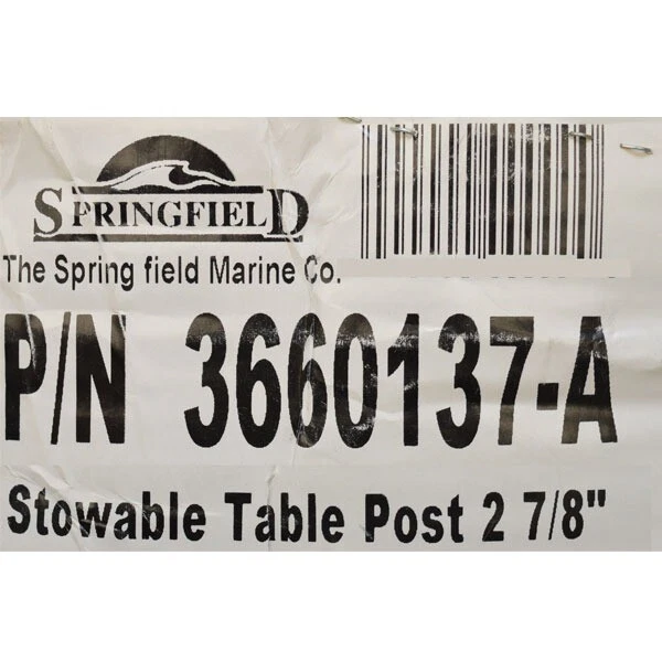 Hard to find original boat parts - Up to 70% off in our eBay store! Springfield Boat Table Post 3660137-A | 38 1/2 x 2 7/8 Aluminum We're your port for thousands of hard to find boat parts, original manufacturer's parts and marine surplus. Check out this deal!! Description Boat part number 1067344 is a new table post from Springfield Marine, part number 3660137-A . This table post is constructed out of anodized aluminum, and measures approximately 38 1/2" L x 2 7/8" OD overall with both ends tapering to 2 3/4" OD. Specifications: Boat Manufacturer: Springfield Marine Part Number: 3660137-A Material: Anodized Aluminum Dimensions: 38 1/2" L x 2 7/8" OD Openings: (2) 2 3/4" OD open ends Sold as seen in pictures. Customers please note every computer shows colors differently. All measurements are approximate. Hardware and instruction / installation manual not included. GLS Stock Number 1067344--FD517 A Message from Great Lakes Skipper We stand behind our products and maintain great relationships with our customers. If you are having an issue, please contact us with an eBay message first before opening an eBay case and we will make every effort to resolve any concerns. Shipping & Delivery Does this item have a Free Shipping option? Check the shipping tab. If you see a Free Shipping option, we will cover the shipping cost to any physical address located in the lower 48 United States at no extra charge. The physical address you provide must be deliverable by ANY service of our choice. We reserve the right to choose the shipping company, so if you would prefer more control over the shipping feel free to choose a different service. Unfortunately, our free service does not permit shipping to PO Boxes, APO/FPO/DPO addresses, US Territories, Alaska, Hawaii or Puerto Rico. If the description above states that this will be a truckline or freight shipment, this means your item will arrive by a large commercial vehicle and the address you provide MUST be a commercial business with either a loading dock or forklift to remove the item from the truck. If the carrier determines your address is a residence (or a business in a residential neighbourhood), by ordering this item you agree to pay any additional residential delivery, redelivery and/or accesorial surcharges. Please send us a message with any questions regarding freight shipments. International freight shipments will incur additional customs and governmental charges which are the responsibility of the buyer. Buying more than one item? Great Lakes Skipper is happy to combine multiple eBay items into one order. Please send us a message and we will be happy to send you a custom shipping quote for your items. Special note for buyers choosing US Postal Priority Mail International Shipping We currently offer USPS Priority International Mail shipping options to provide our international buyers more shipping choices. However, due to the USPS Mail Services high rates of loss, damage and poor insurance coverage, we are forced to reserve the right to ship higher value items by FedEx so your package(s) may be fully insured. Unfortunately, this may increase your shipping costs. When choosing USPS Priority International Mail as your shipping method, you understand we may reroute the package via FedEx and you agree to pay any additional costs incurred. If you would like to make special shipping arrangements or have any questions, please send us an eBay message before ordering. Visit our eBay store for more great deals! NEED MORE INFORMATION? For technical questions regarding installation, operation, boat compatibility, for this item please contact the part manufacturer or your boat dealer. For questions regarding this purchase, for example, item condition, color, dimensions, shipping costs, payment methods, combined shipping, etc., feel free to send us a message any time!