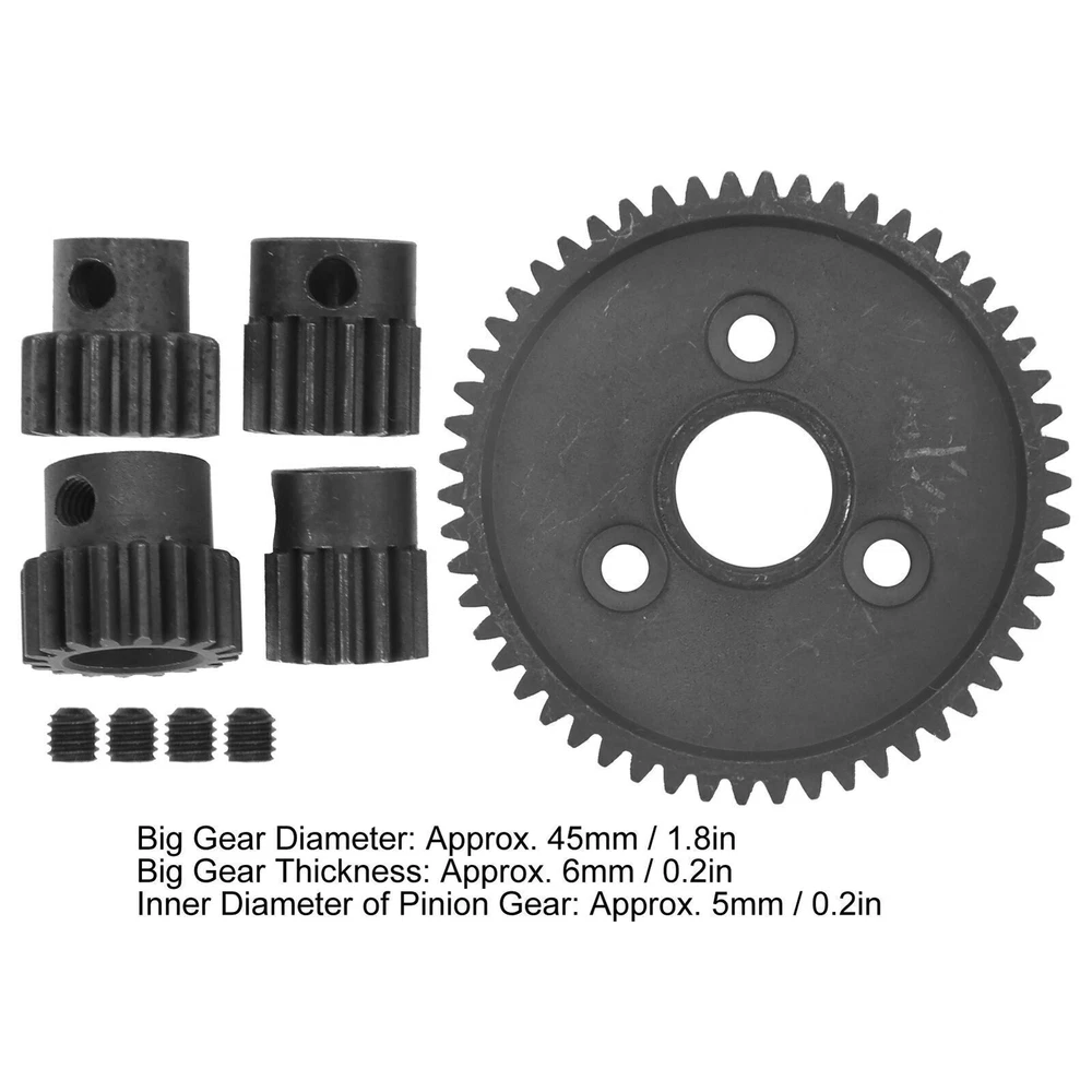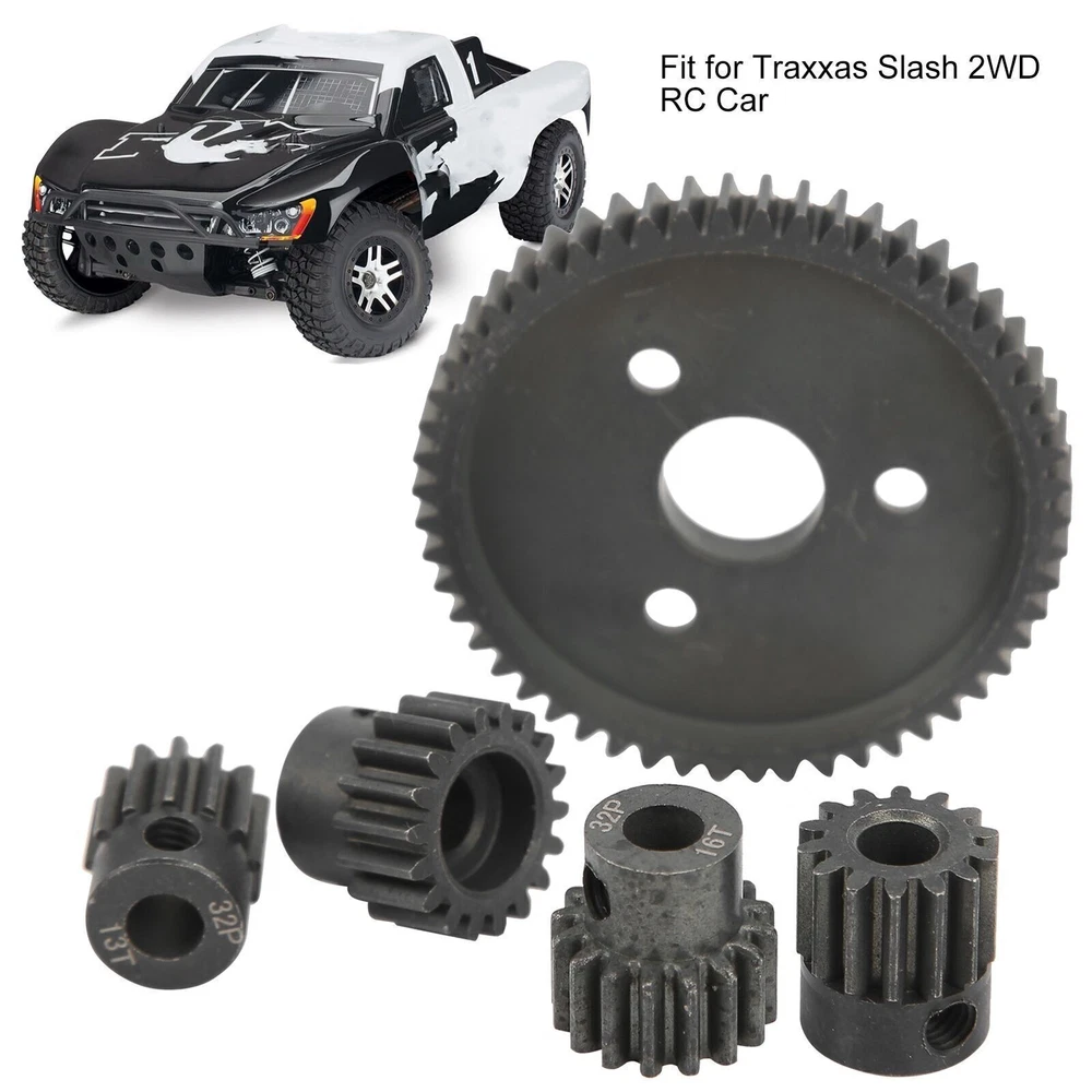 Feature: 1. Made of high‑quality high‑strength steel, strong and durable in use, and with long service life. 2. Hard anodic oxidation process, the surface is treated with anti‑rust, with long‑lasting performance. 3. Easy to install and remove, reliable in use, and can be a good replacement for old or damaged accessories. 4. High‑level simulation can improve the authenticity and performance of your RC cars. 5. Good spare parts for upgrading your remote control car, fit for Traxxas Slash 2WD RC Cars. Specification: Item Type: RC Gears Material: Metal Product Color: Black Big Gear Diameter: Approx. 45mm / 1.8in Big Gear Thickness: Approx. 6mm / 0.2in Inner Diameter of Pinion Gear: Approx. 5mm / 0.2in T Number of Big Gear: 54T T Number of 32P Pinion Gear: 13T, 14T, 16T, 18T (one for each) Product Weight: Approx. 74g / 2.6oz Compatibility: Fit for Traxxas Slash 2WD RC Car Package List: 5 x Gears 4 x Screw All the items will be dispatched within one business day by Airmail after the payment is clear. Most times you will receive your order within 10-30 business days after we transfer your package to the delivery company. We cannot guarantee the delivery timeframe if the post office has any unexpected delays due to holiday,weather,customs, or other conditions. Some countries like Russia, Brazil, or some European countries may take up to 50 days or longer for delivery. We appreciate your patience if you haven't received items in 30 days(Russian customers may need more patience by reason of the local delivery system and/or customs). If you are concerned in any way, please feel free to contact us via ebay message instead of leaving negative/neutral feedback or opening a dispute . We will do our best to solve any problem(resend or refund any missingitem). Customs duty is obligation and liability of citizens in yourresponsible for any tax and custom duty incurred. Generally, thedelay or failure delivery is sometimes caused by the policy of different customs. Our listing price includes the value of goods,packaging cost,and export taxes,not including international duties. duties,taxes,and charges are not included in the item price or shipping fee. The duties are buyers' responsibility. Please check with your country's customs office determine what these additional costs will be prior to your purchase. All disputes arising from the duties will be submitted to ebay for solution. Any questions, pls. contact us via ebay message or email us. We will reply your message within 48 hours. If you do not receive our reply within 48 hours, pls. post a message again because sometimes our message system may block some emails. If you are satisfied with our service, pls. kindly leave us a positive feedback and give us the Detailed Seller Rating with all " 5 " in very area. Our aim is to provide Level Customer Service, your recognition will encourage us greatly and serve you better. We strive to keep all our customers satisfy. We will do our up most to exceed your expectations in customer service, communication and dispatching of your orders.