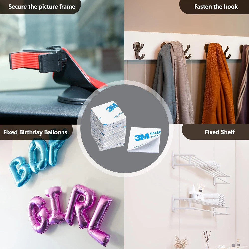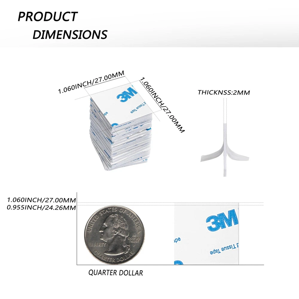 3M Double Sided Foam Tape 【What will you get】You will receive 100 pieces of Square 3m foam pads, which can meet your various needs, enough for a family to use for a period of time 【Heavy Duty Adhesive Pads】: The 3M Double Sided Adhesive Pads is made of EVA foam, which is strong and durable, easy to use and disassemble, will not damage the surface of the item or leave traces, can replace the function of screws, rivets and other parts, and will not damage the wall, so it is very suitable for installing handicrafts and decorations. 【The 3M double sided foam tape Dimensions】: 27 mm x 27 mm/ 1.06 x 1.06 inches; Thickness: 2 mm/ 0.08 inches. 【Easy to use】: 1. Clean the surface. 2. Tear off the double-sided tape. 3. Use a hair dryer to blow the tape. 4. Fix it in the installation position and press firmly for 10 seconds. By doing so, the best viscosity effect can be achieved. 【Widely applicable】: Our double-sided adhesive pad can be widely used to fix various flat surface materials, such as metal, plastic, wood, etc. They are also suitable for various DIY art crafts, parties, weddings, home decor and other occasions. Please note: Do not stick the adhesive pad to rough, textured, greasy surfaces or leather surfaces