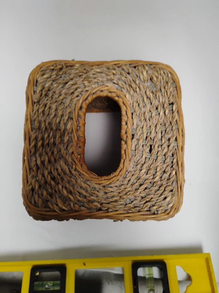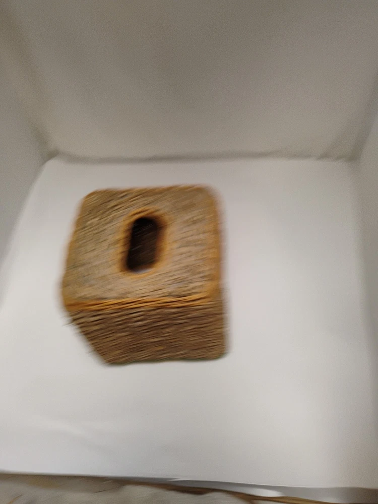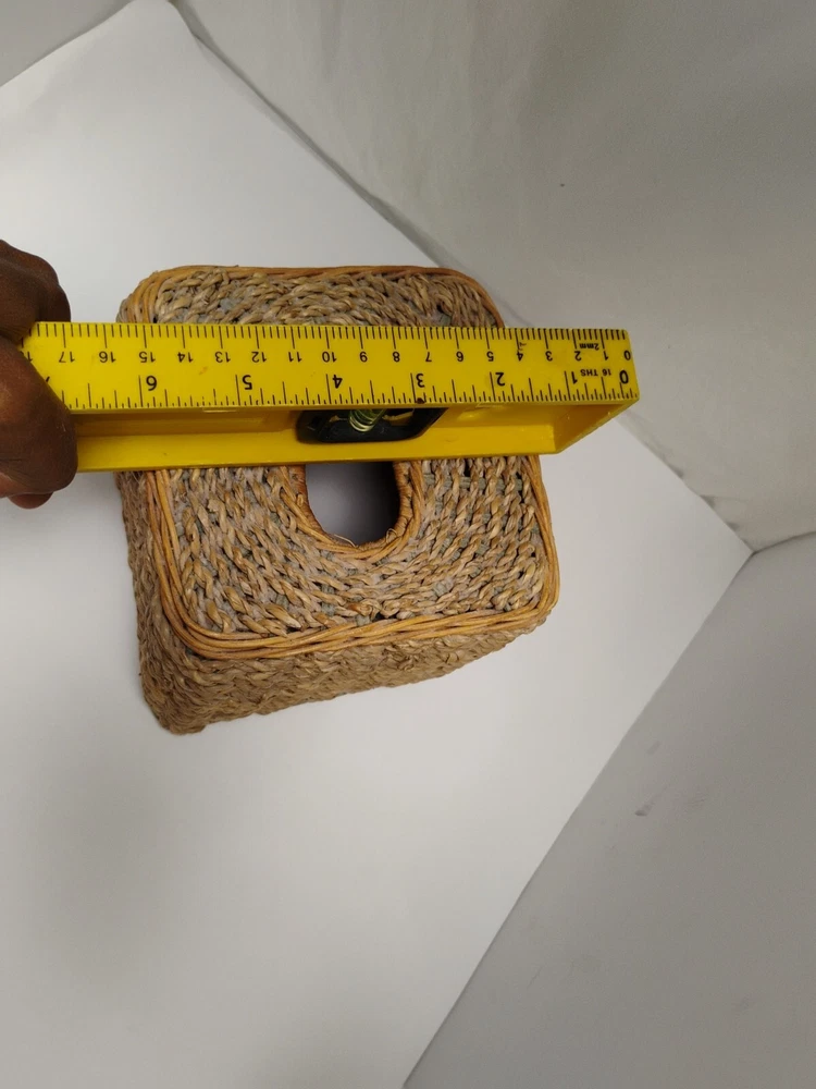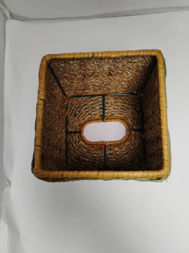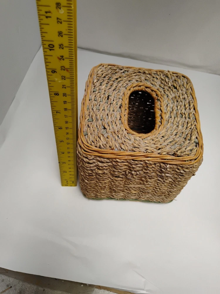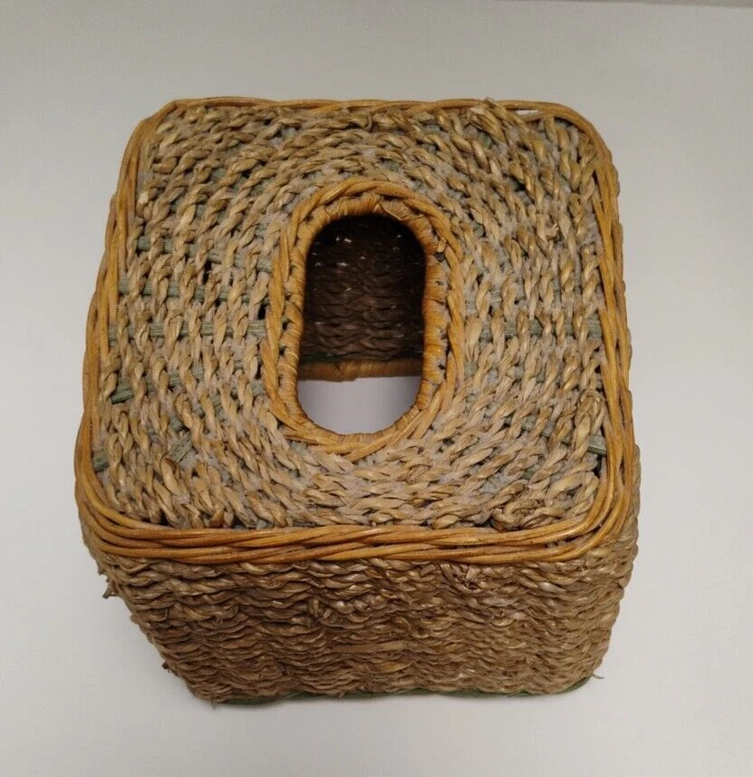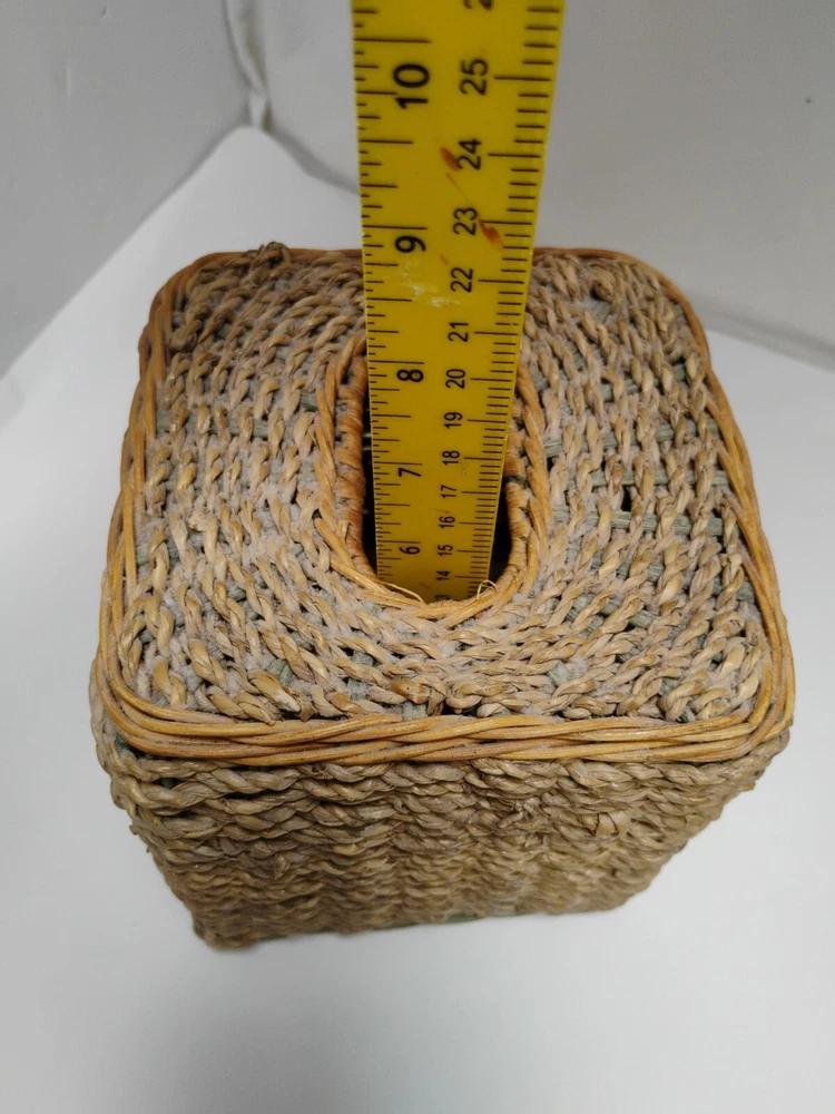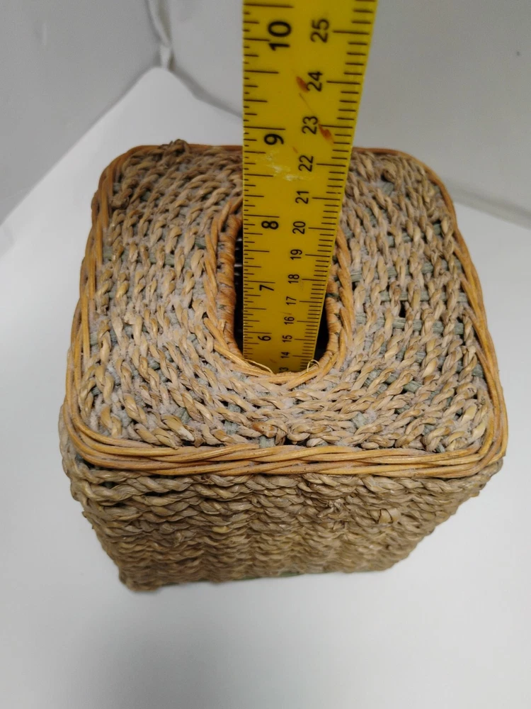 the tissue box has some age wear on top of the tissue box. all around is in great condition Square Beige & Woven Wicker Rope Design Tissue Box Cover Holder Vintage