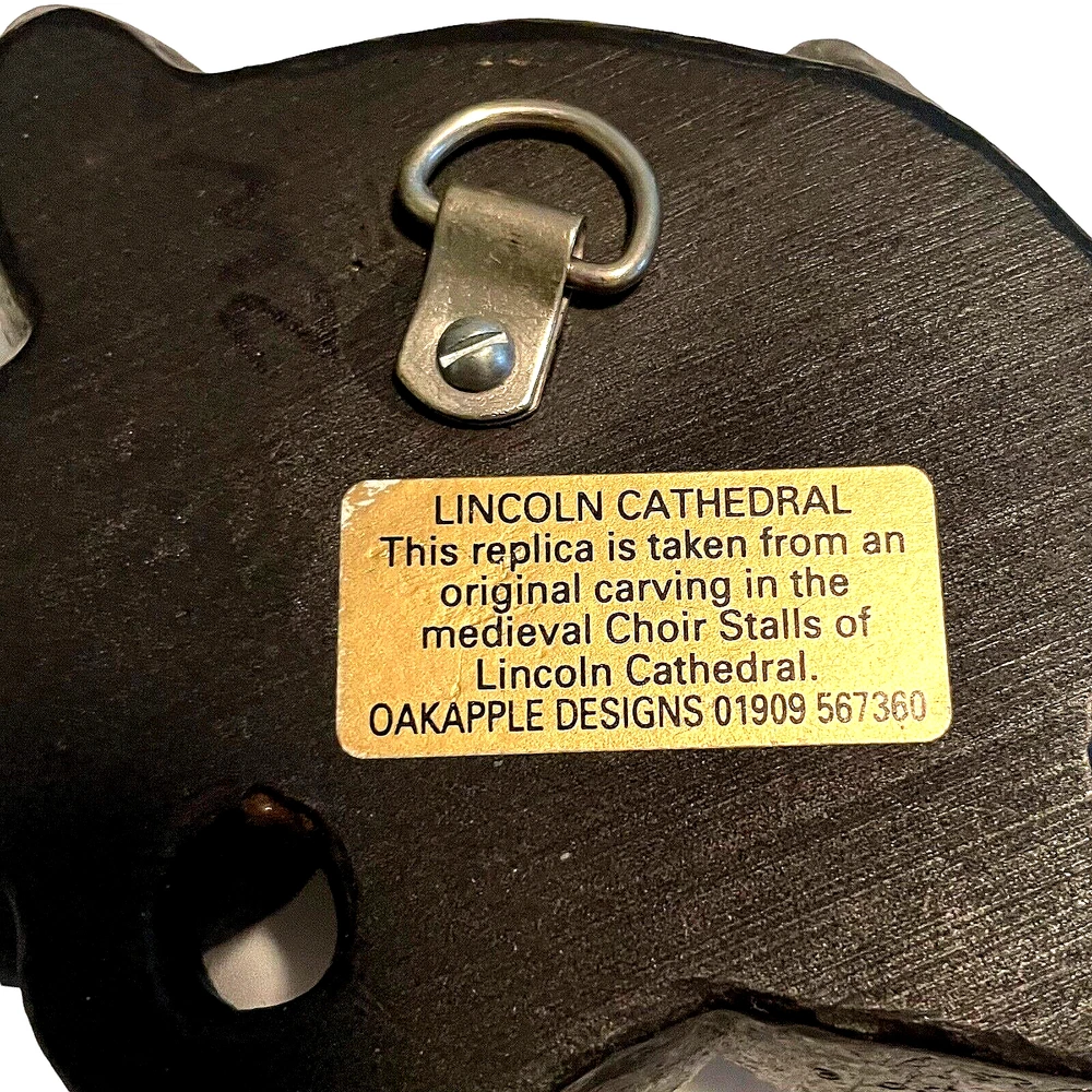 Lincoln Cathedral This replica is taken from an original carving in the medieval Choir Stalls of Lincoln Cathedral Oakapple Designs #01909 567360 Measures; 4-1/8 in wide by 3-3/4 in. tall has a wall hanger on the back Please see my pictures. #5
