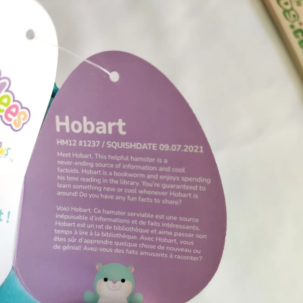 This adorable Squishmallow HugMees plush toy is perfect for Easter! Meet Hobart, the lovable Easter Hamster, and give him a big hug. He's made of soft, plush material and is perfect for snuggling with. Plus, he's washable, making him easy to clean and keep clean. Hobart is 12 inches tall and comes in a teal color. He's recommended for children ages 3 and up, and is part of the Kellytoy character family. Made in China, this toy is perfect for Easter and any other occasion. Bring home Hobart today and give him a big hug!